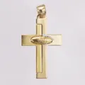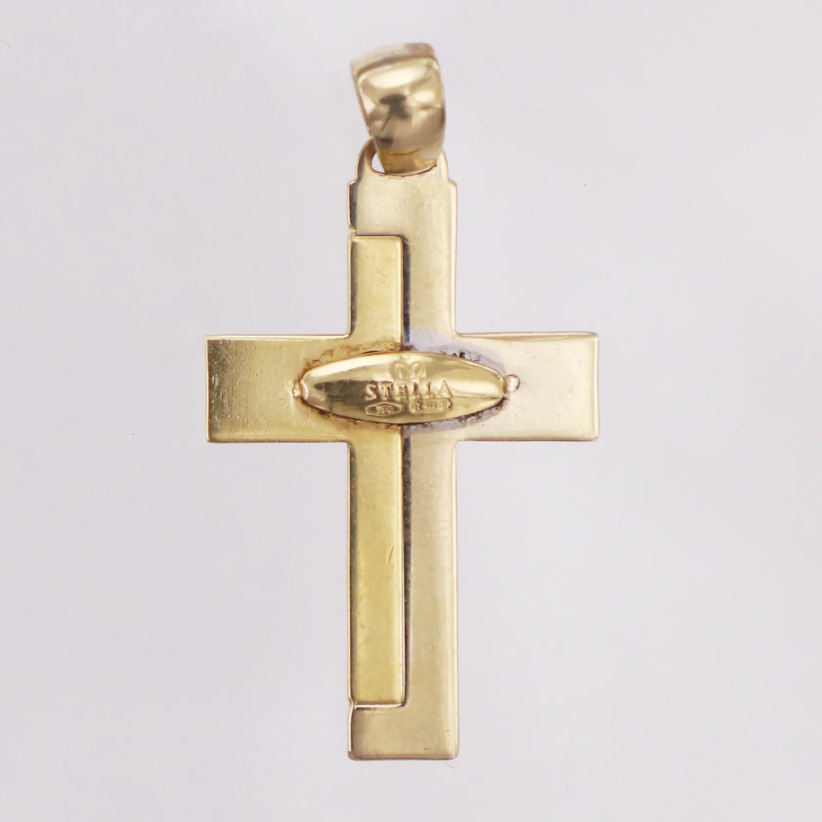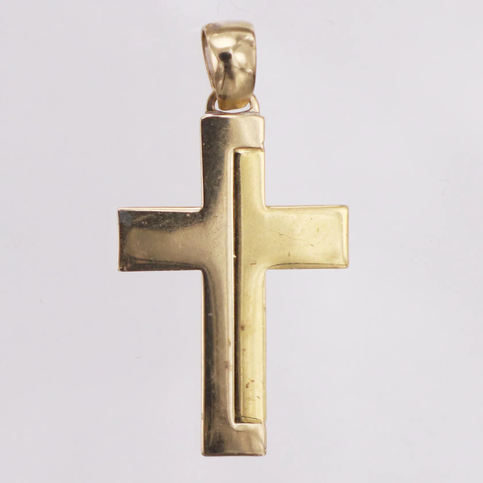 Hänge kors, längd 36mm inkl ögla, bredd 19mm, italienska stämplar, 18K Vikt: 2,2 g.