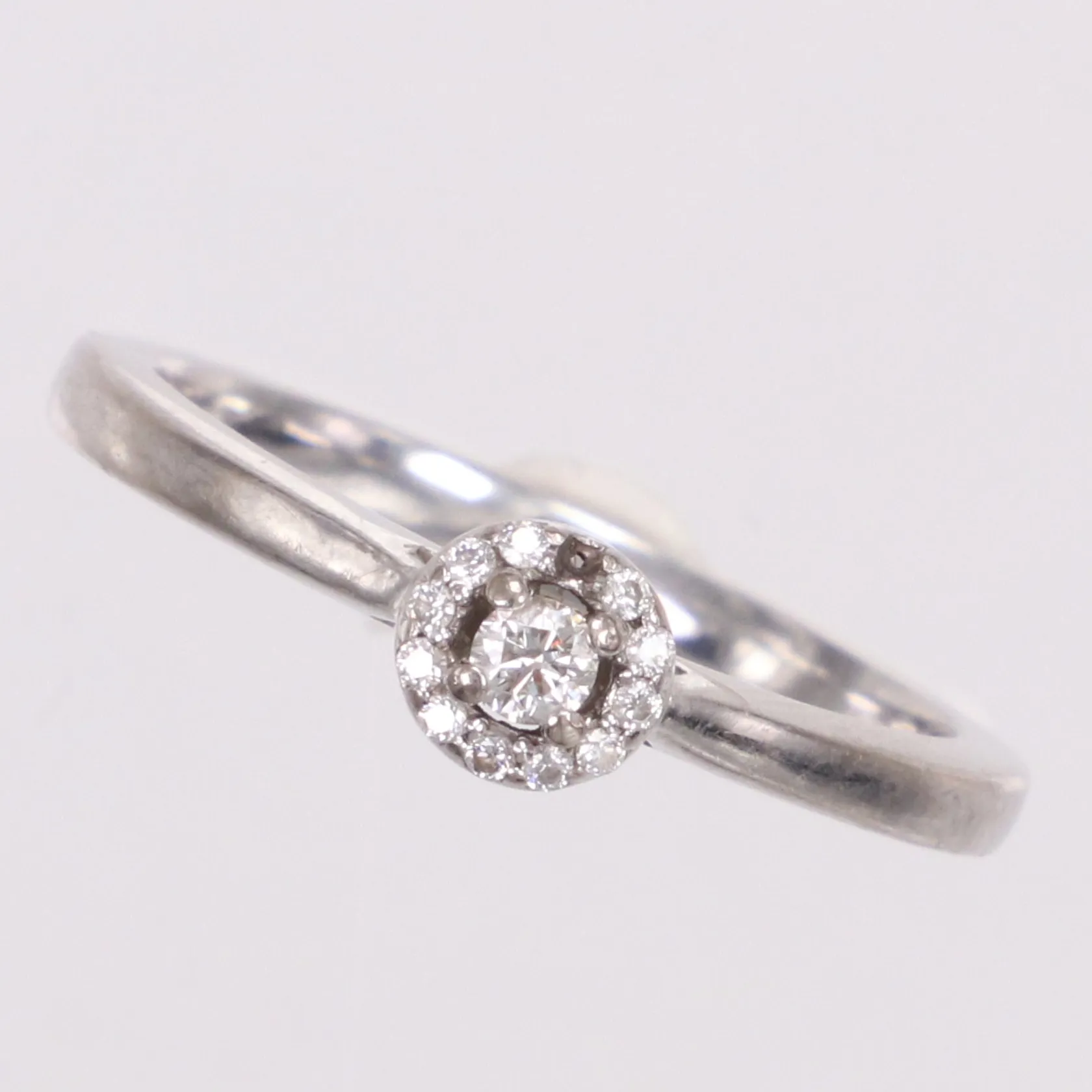 Ring diamanter 1x ca0,05ct + 11 x ca0,005ct, Guldfynd, stl 16¾, vitguld, en diamant saknas, 18K Vikt: 3,1 g.