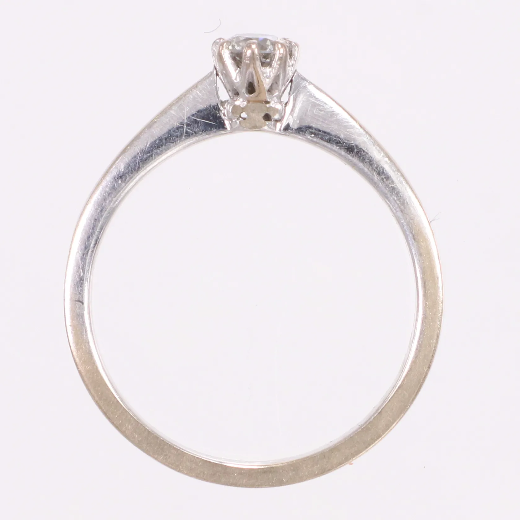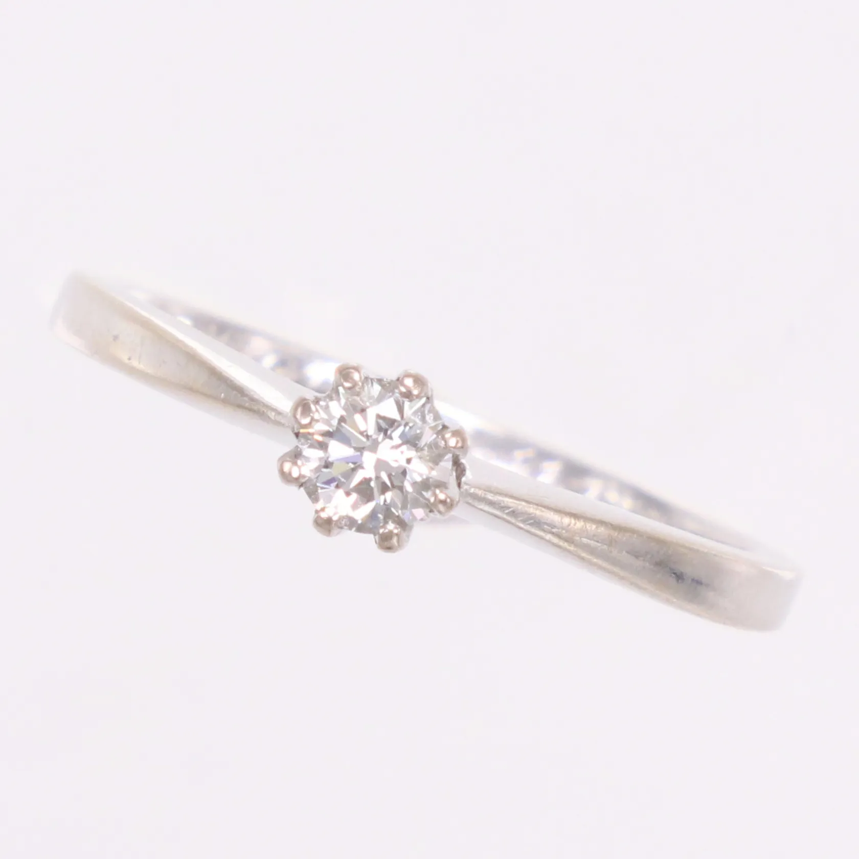 Ring diamant ca 0,18ct, stl 16¾, vitguld, omrodinering behövs, gravyr, 18K Vikt: 2,5 g.