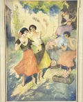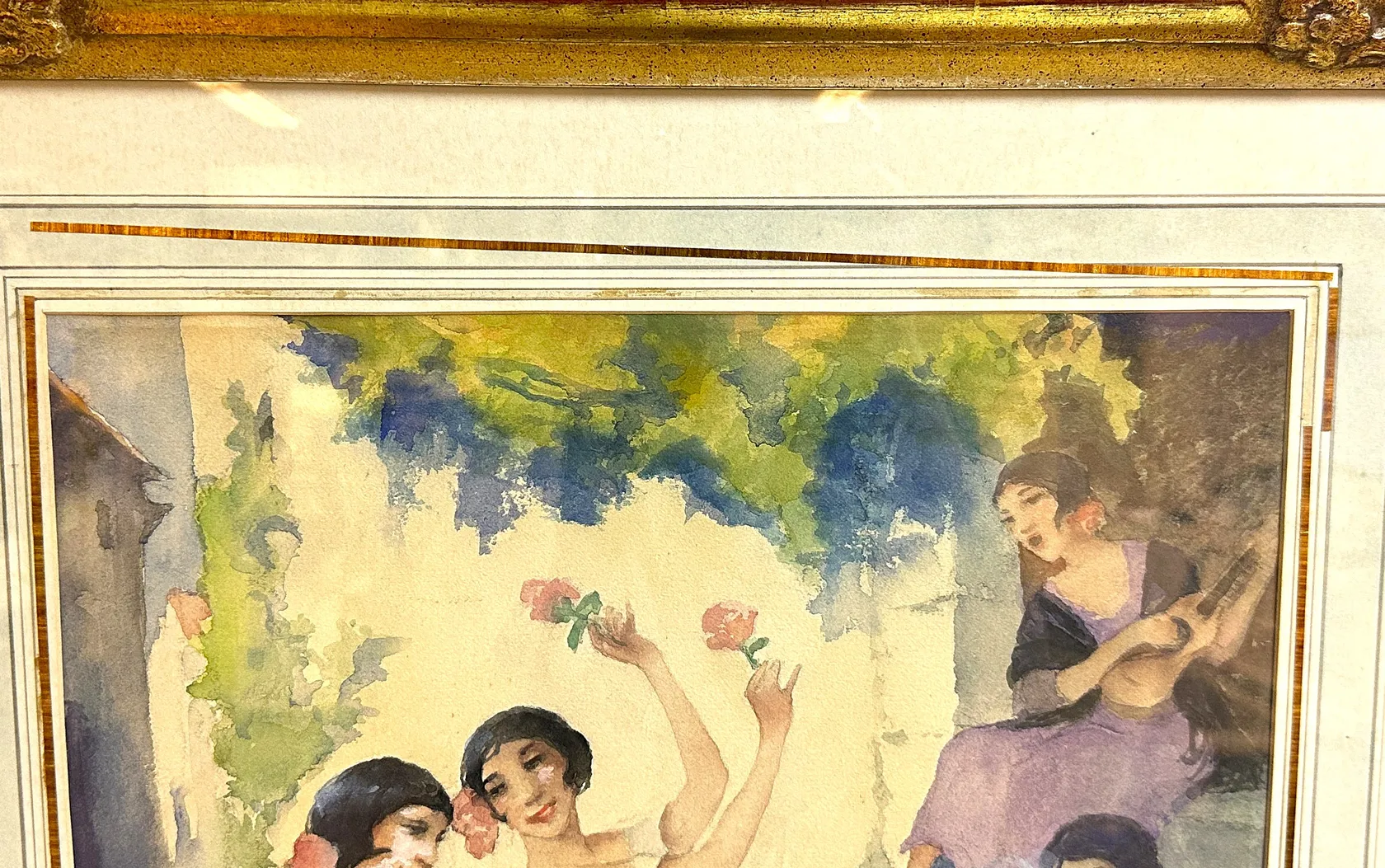 Tavla Akvarell Allan Österlind, signerad, bildmått ca34x49cm, yttermått inklusive ram: ca52x67cm, träram i guldfärgad, slitage och missfärgningar på ram, dekorativ guldfolierad kantlist snemonterad, ej examinerad ur ram, skickas med postpaket Skickas med postpaket.