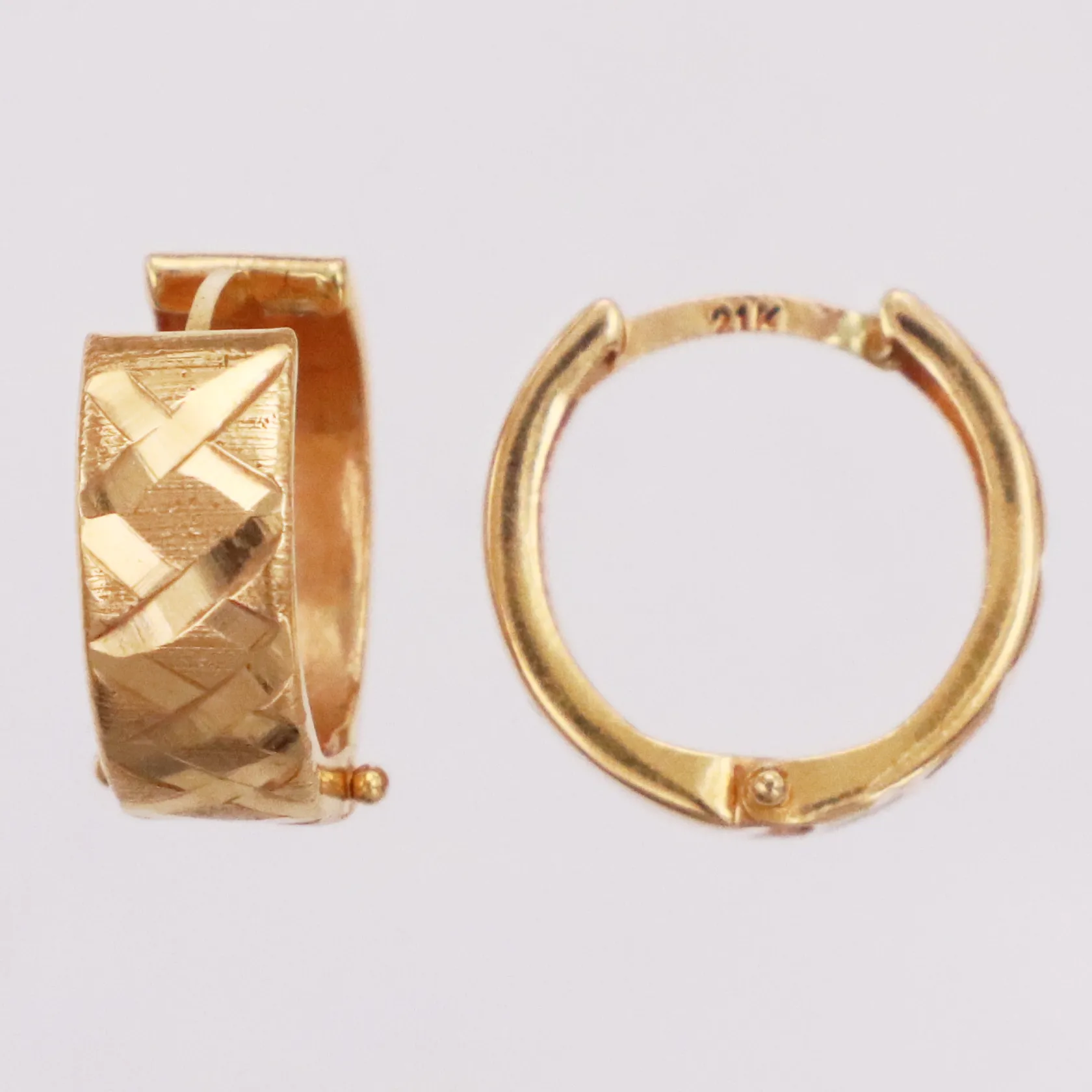 Ett par örhängen mönstrade, 15mm, en pinne bucklig, 21K Vikt: 3,1 g.