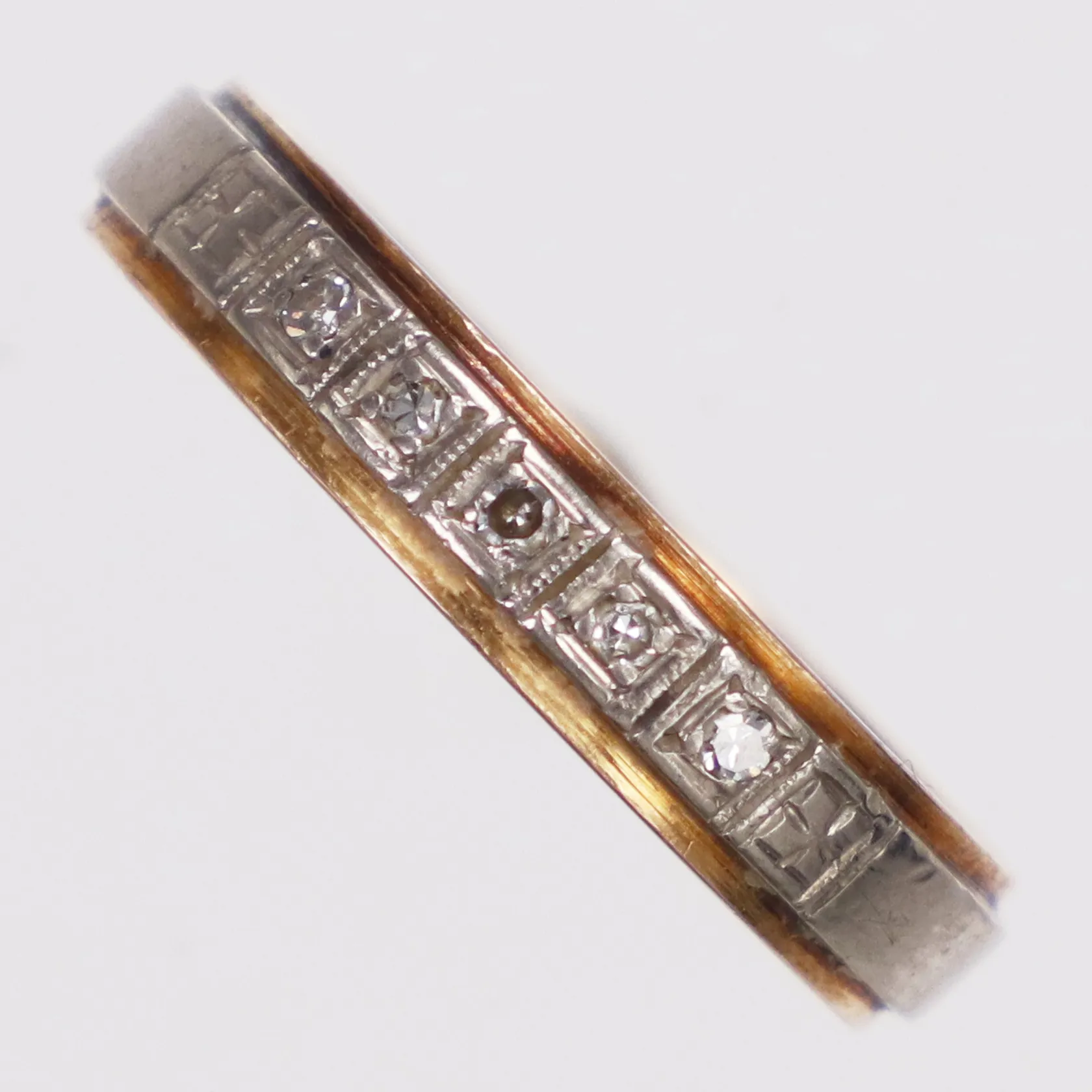 Ring diamanter 5 x ca0,01ct, rött och vitguldsdetaljer, stl 18¾, bredd 3,9mm, Khazzoum Guldsmdeja AB, år 1974, sliten, 18K Vikt: 3,2 g.