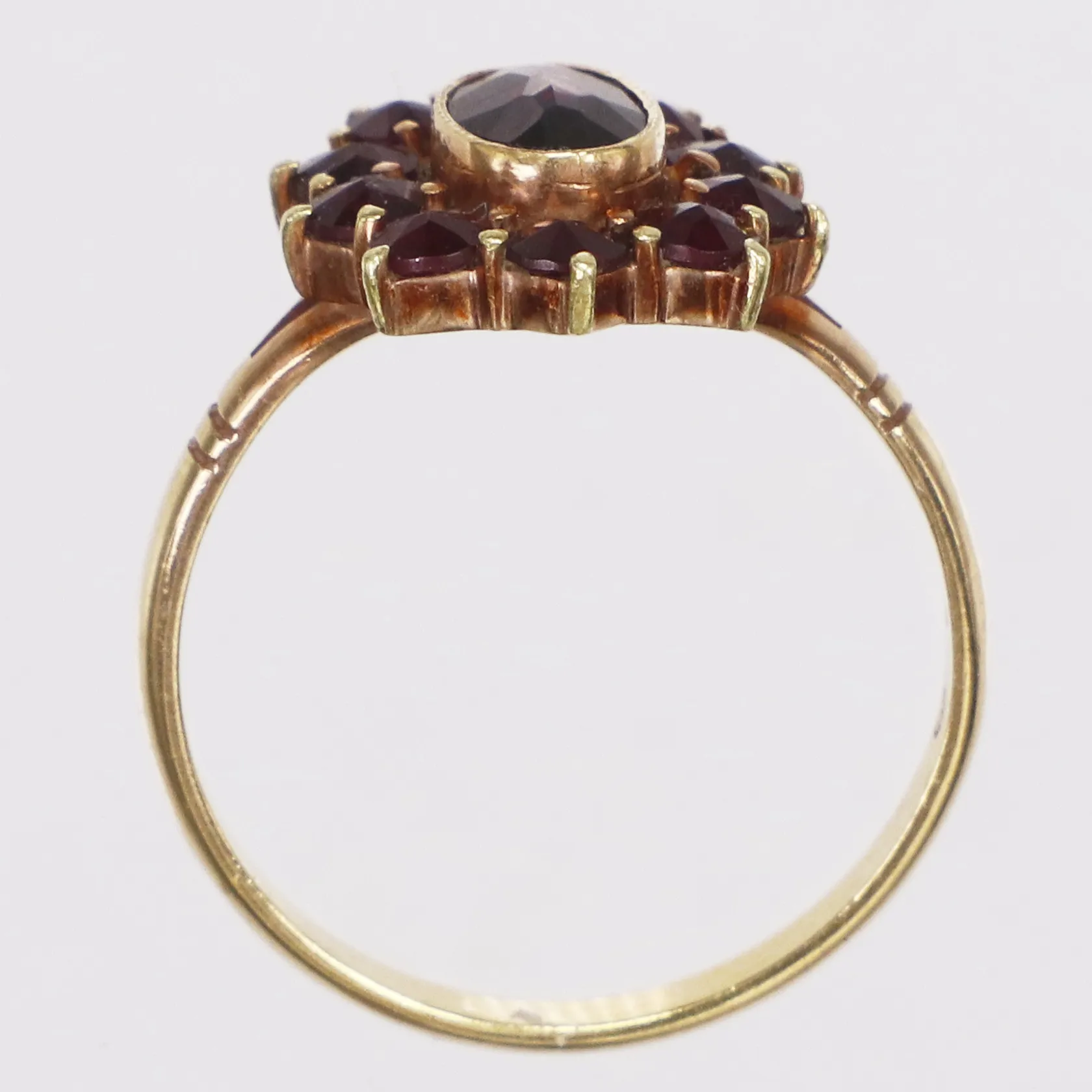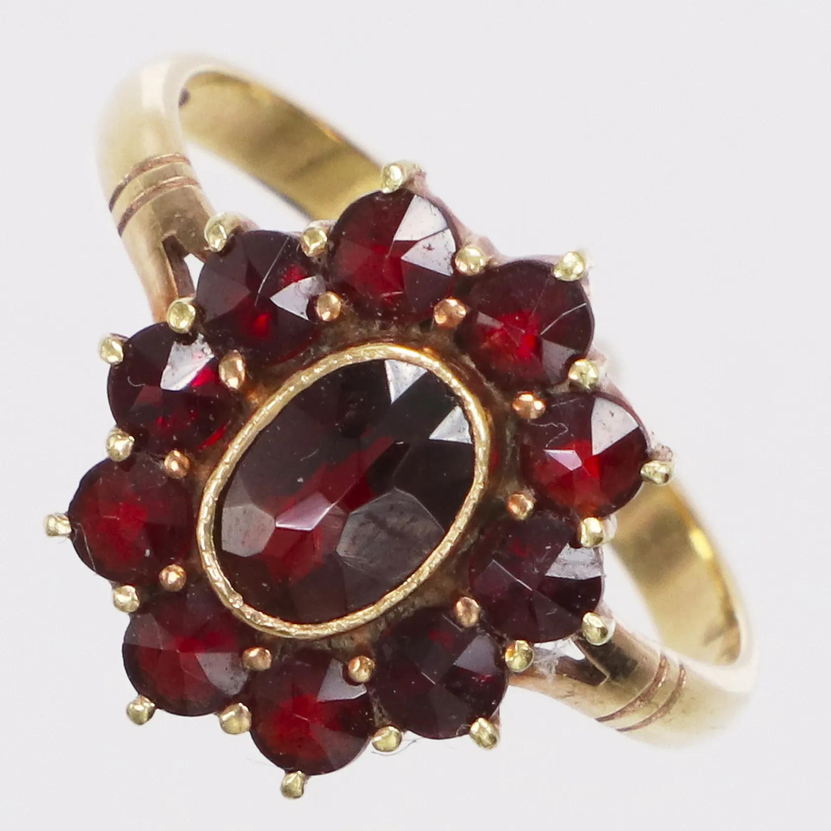 Ring granater, stl 17, bredd 2-13,8mm, 18K Vikt: 3,2 g.