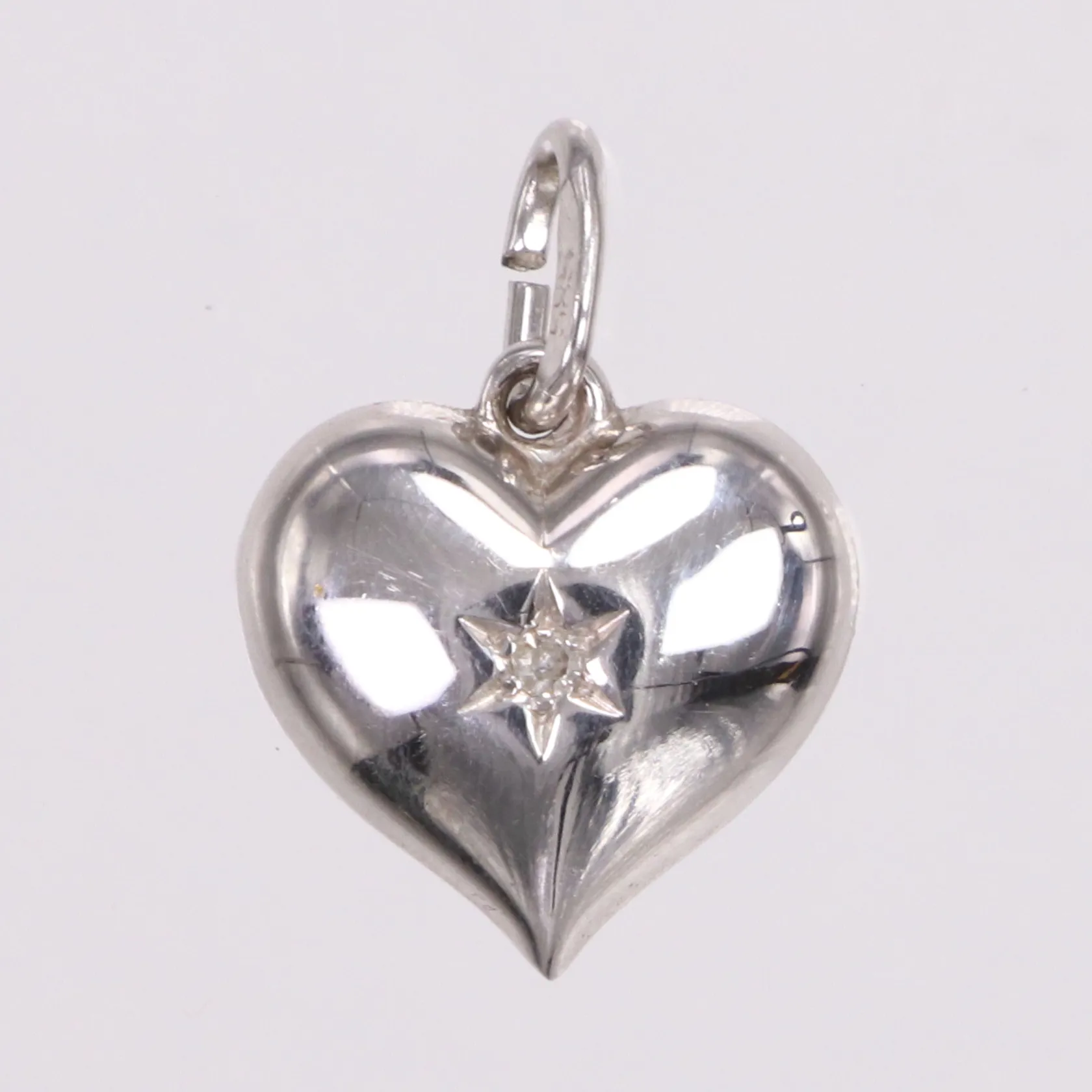 Hänge diamant ca 0,02ct, hjärta, 18mm, vitguld, finska stämplar, 14K Vikt: 1,4 g.