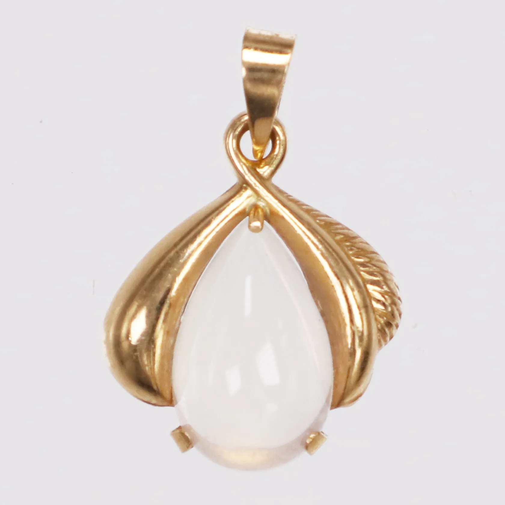 Hänge vit sten troligen månsten, längd 18mm inkl ögla, bredd 13,2mm, 18K Vikt: 1 g.