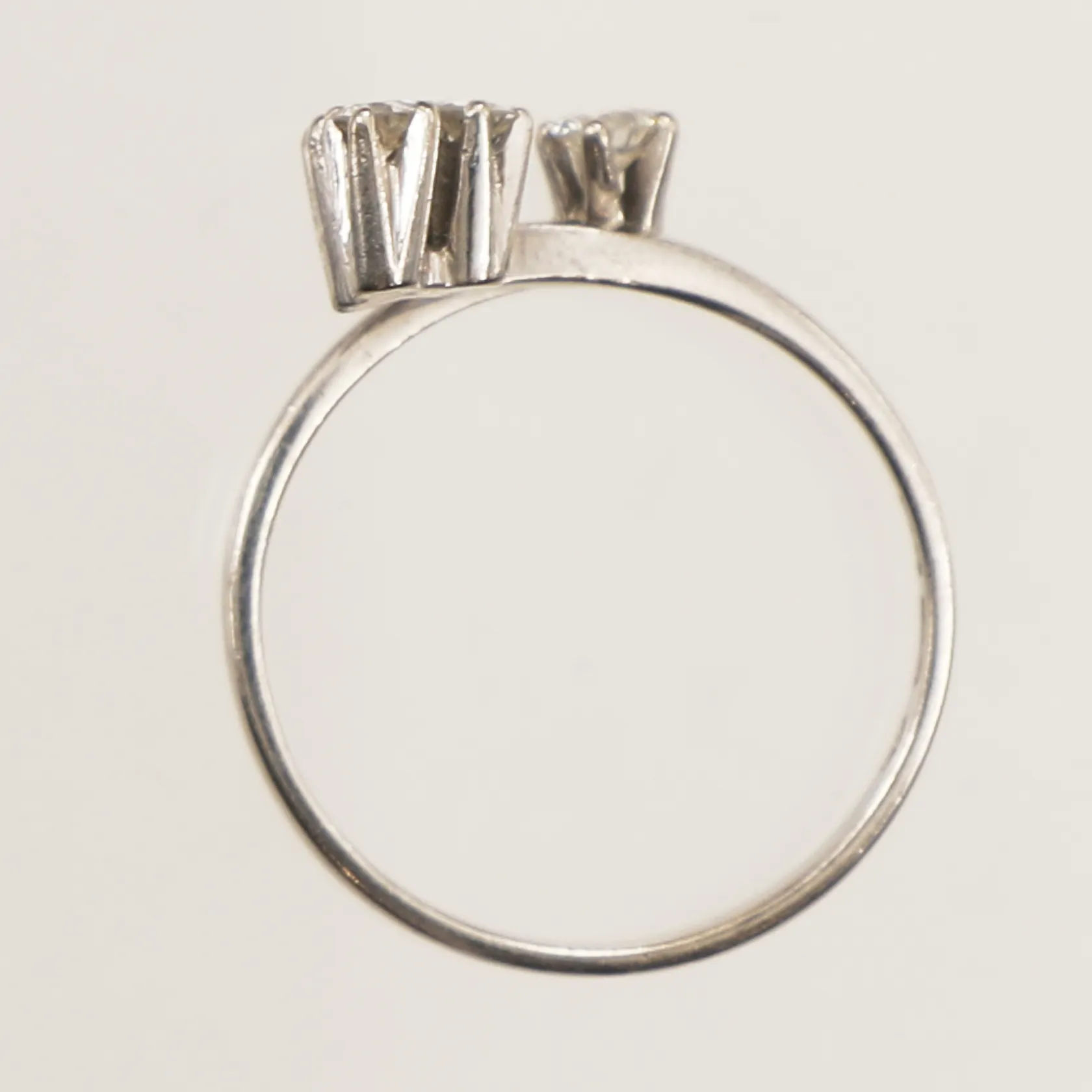 Ring med diamanter, 1x ca 0,08ct, 3x ca 0,04ct totalt 0,25ct enligt gravyr, stl 17, bredd 2,2-7,8mm, vitguld, 18K Vikt: 2,7 g.