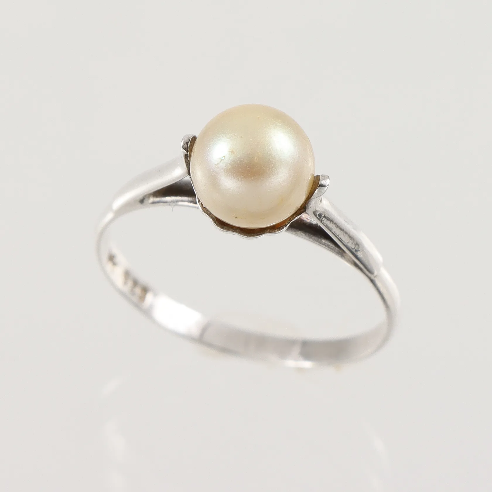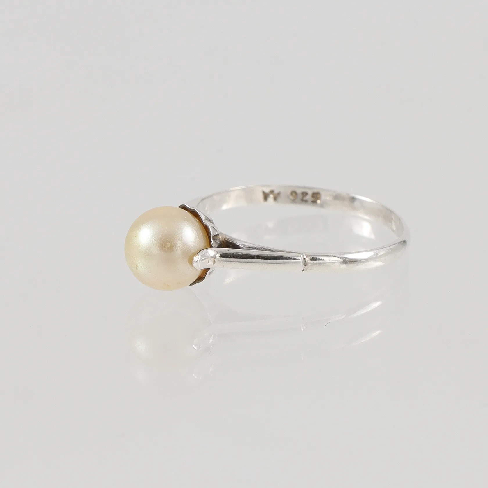 Ring med pärla storlek 17½mm silver Vikt: 1,5 g.