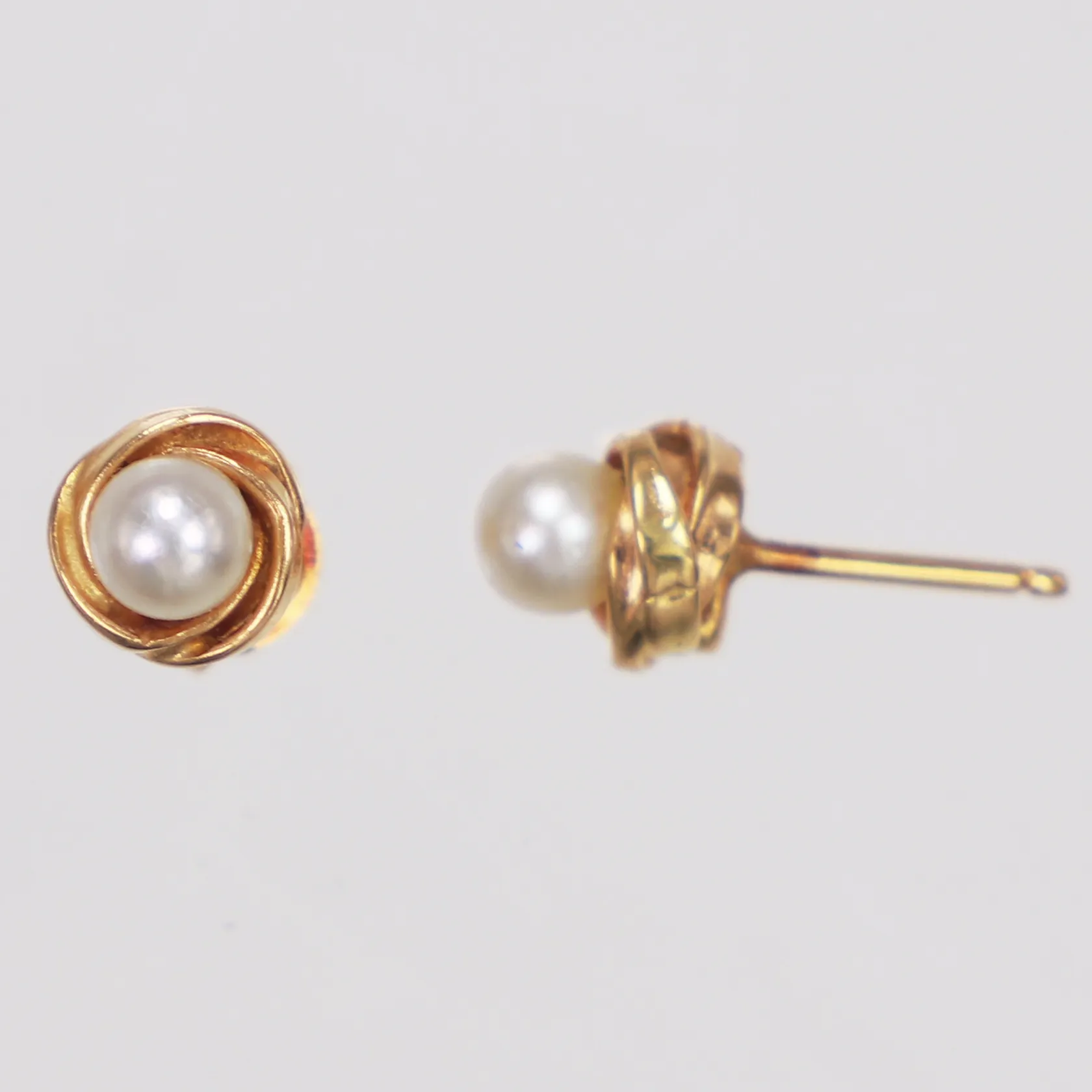 Ett par örhängen odlade sötvattenpärlor, bredd 6mm, ena med plaststopp, 18K Vikt: 1,6 g.