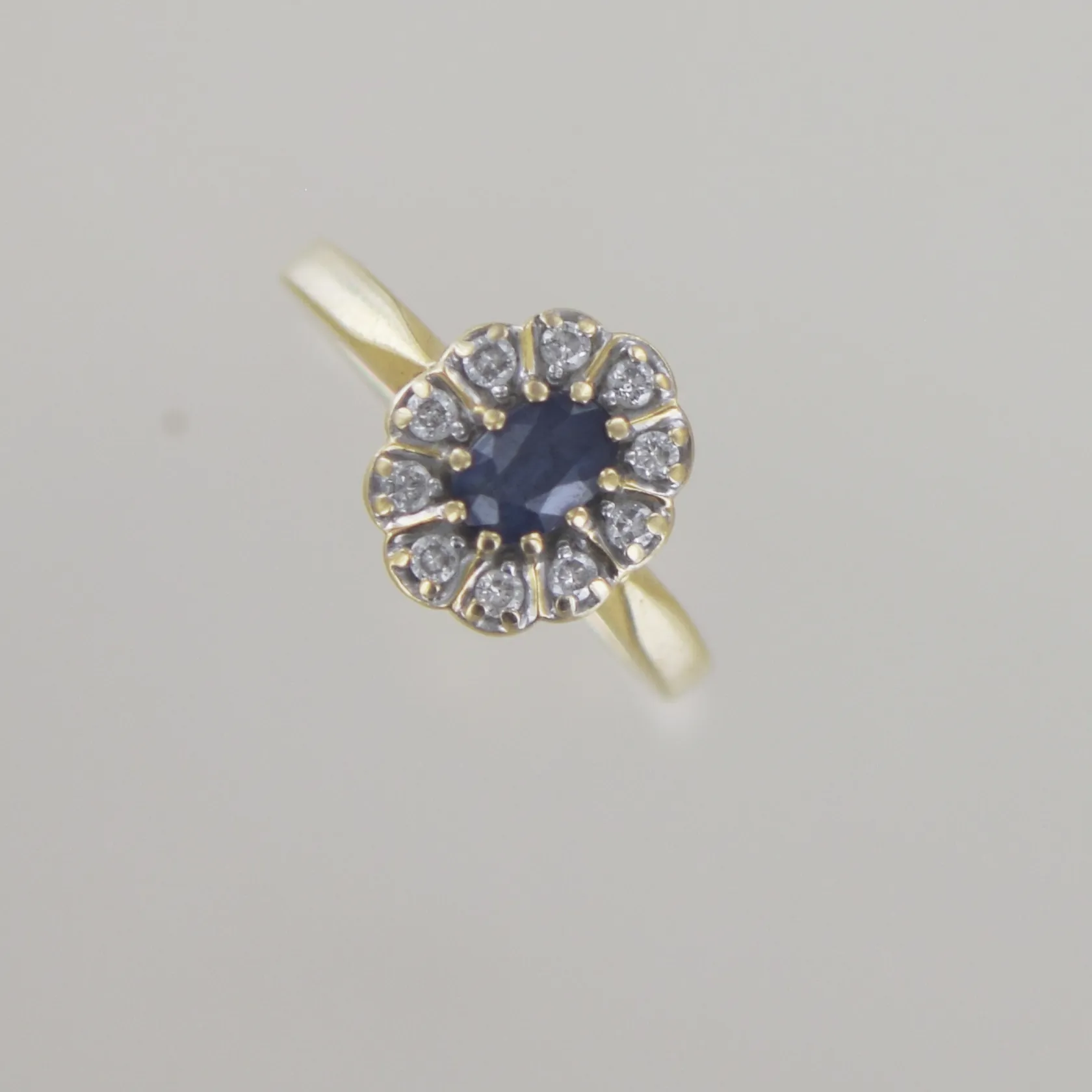 Ring med diamanter 0,20ct+ 1 safir, Ø 17 mm, 18K Vikt: 3,3 g.