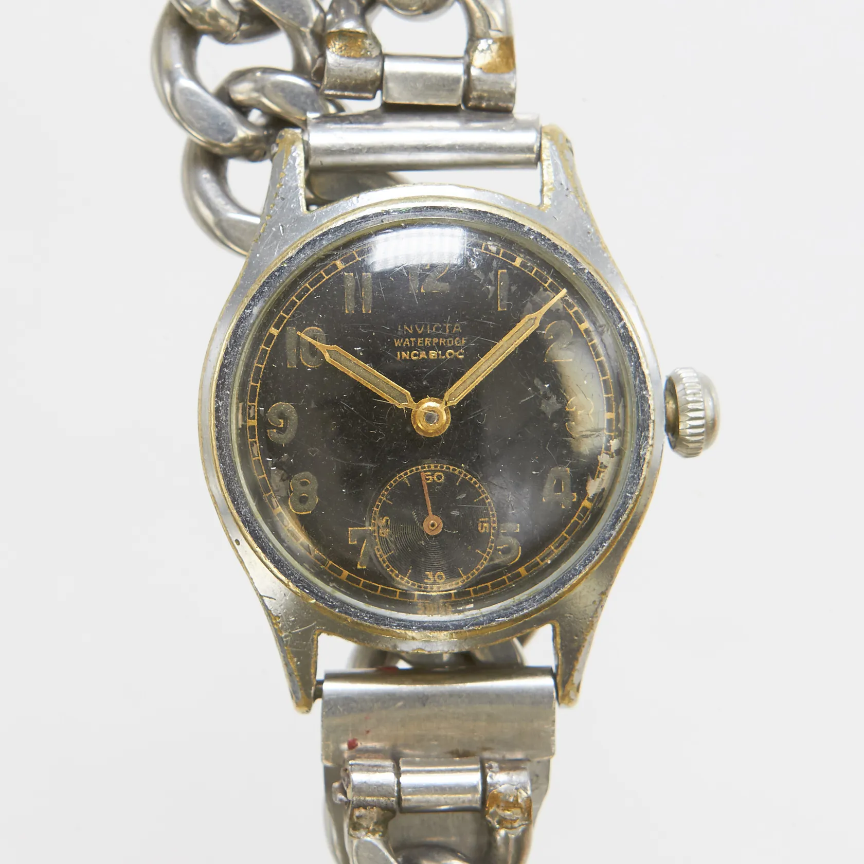 Armbandsur Invicta, stål, manuell, 28,5mm, stållänk, skadad urtavla, tydlig slitage, skadad krona, inga andra tillbehör.