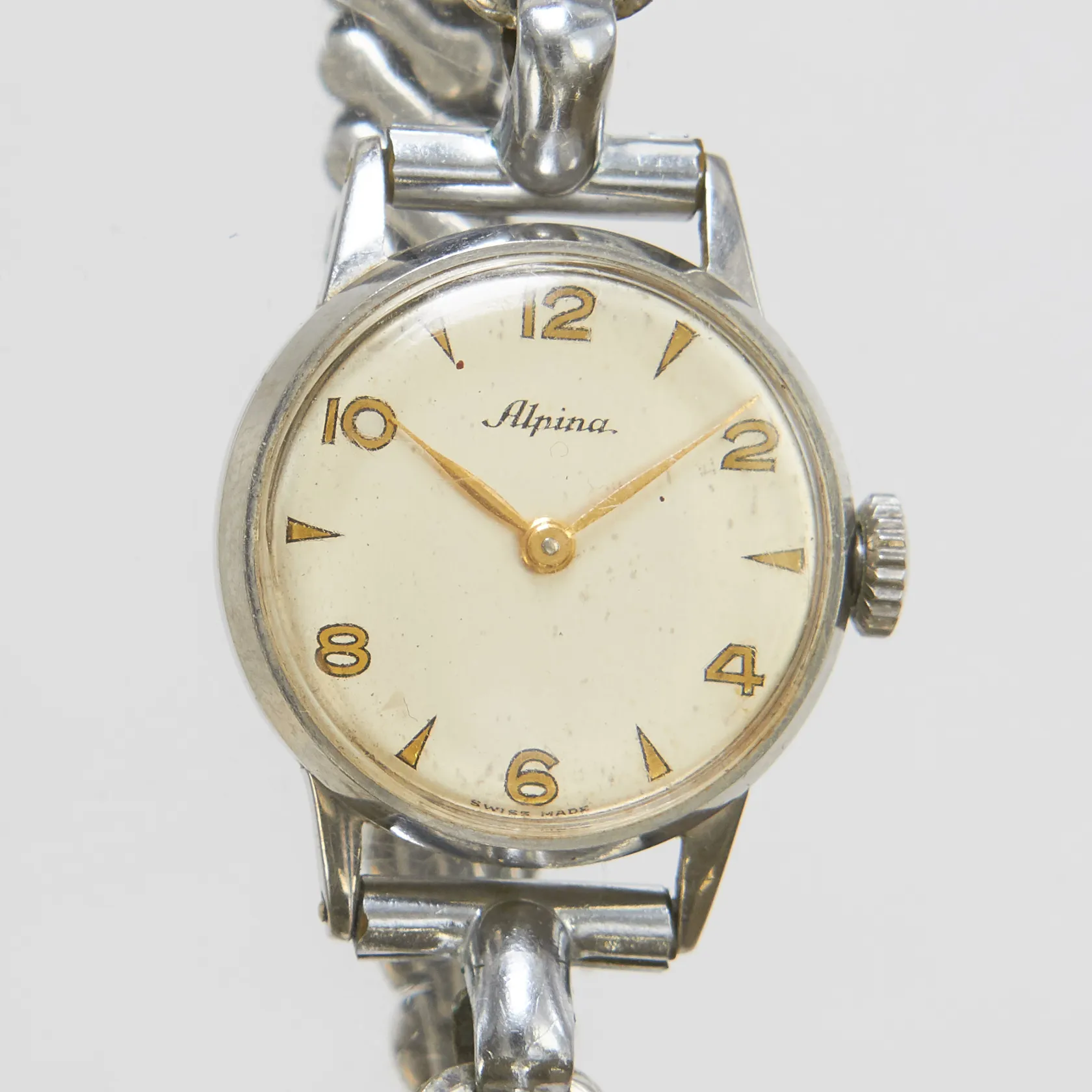 Damur Alpina, stål, manuell, 20mm, flexband, går ej, inga tillbehör.
