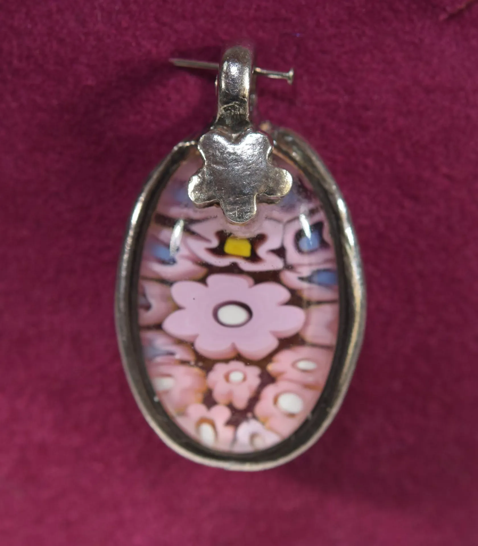 Handgjord hänge /glas, 3,5 x 2 cm , silver Vikt: 9,1 g.