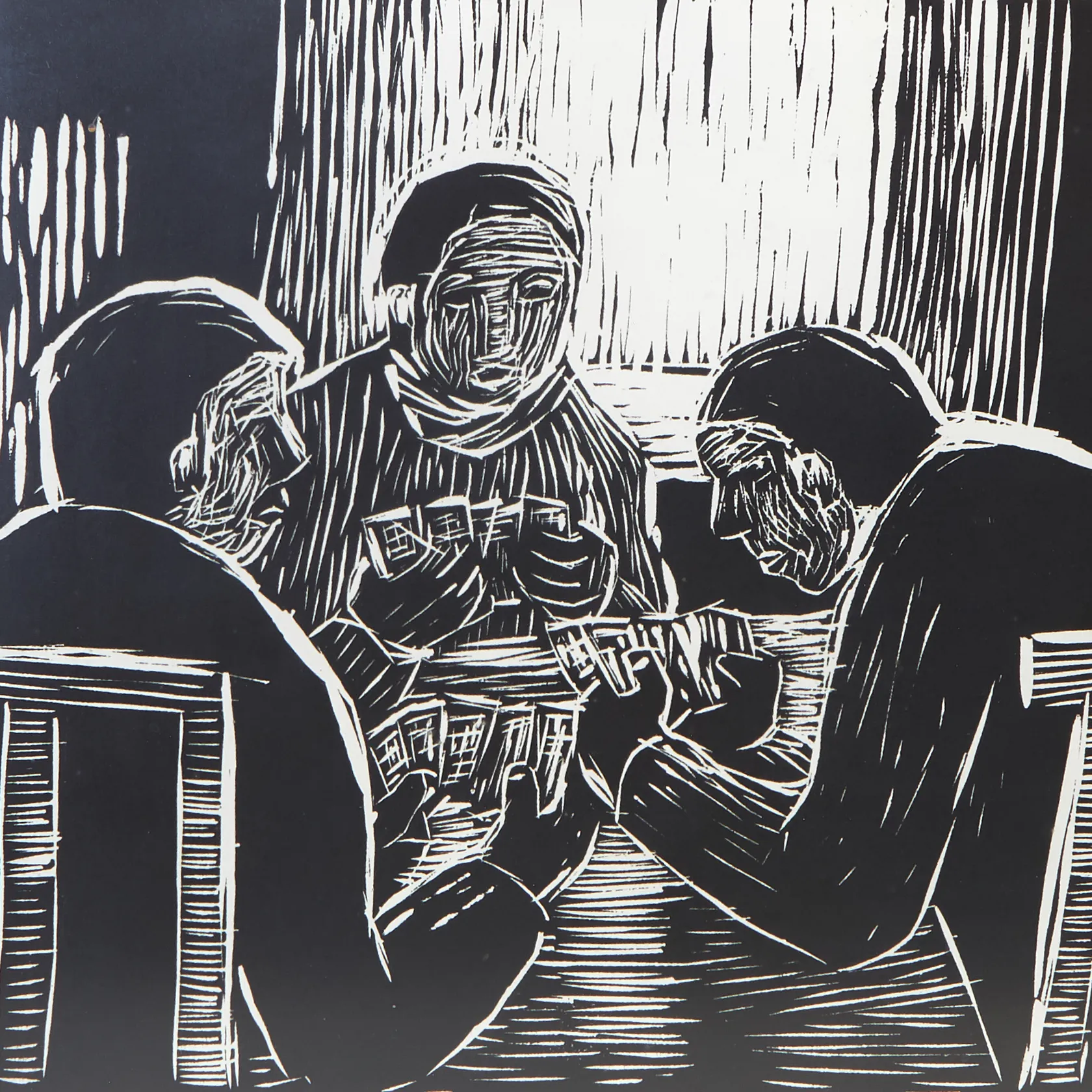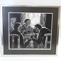 Litografi "Kortspel" signerad Einar