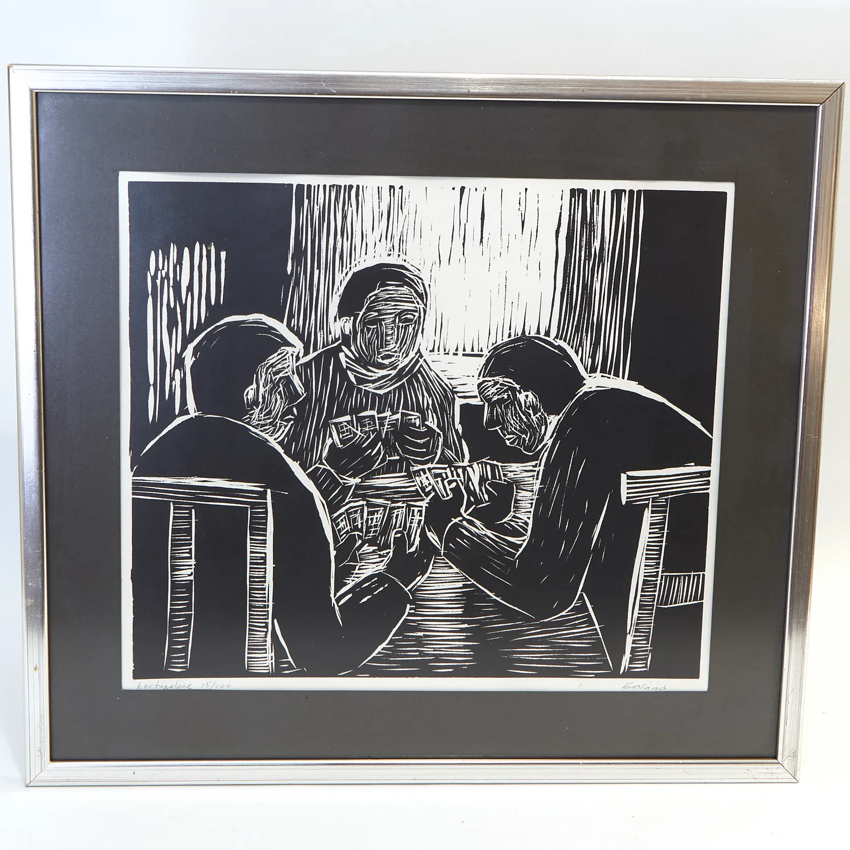 Litografi "Kortspel" signerad Einar Emland, numrerad 15/100, rammått 43,5x48cm