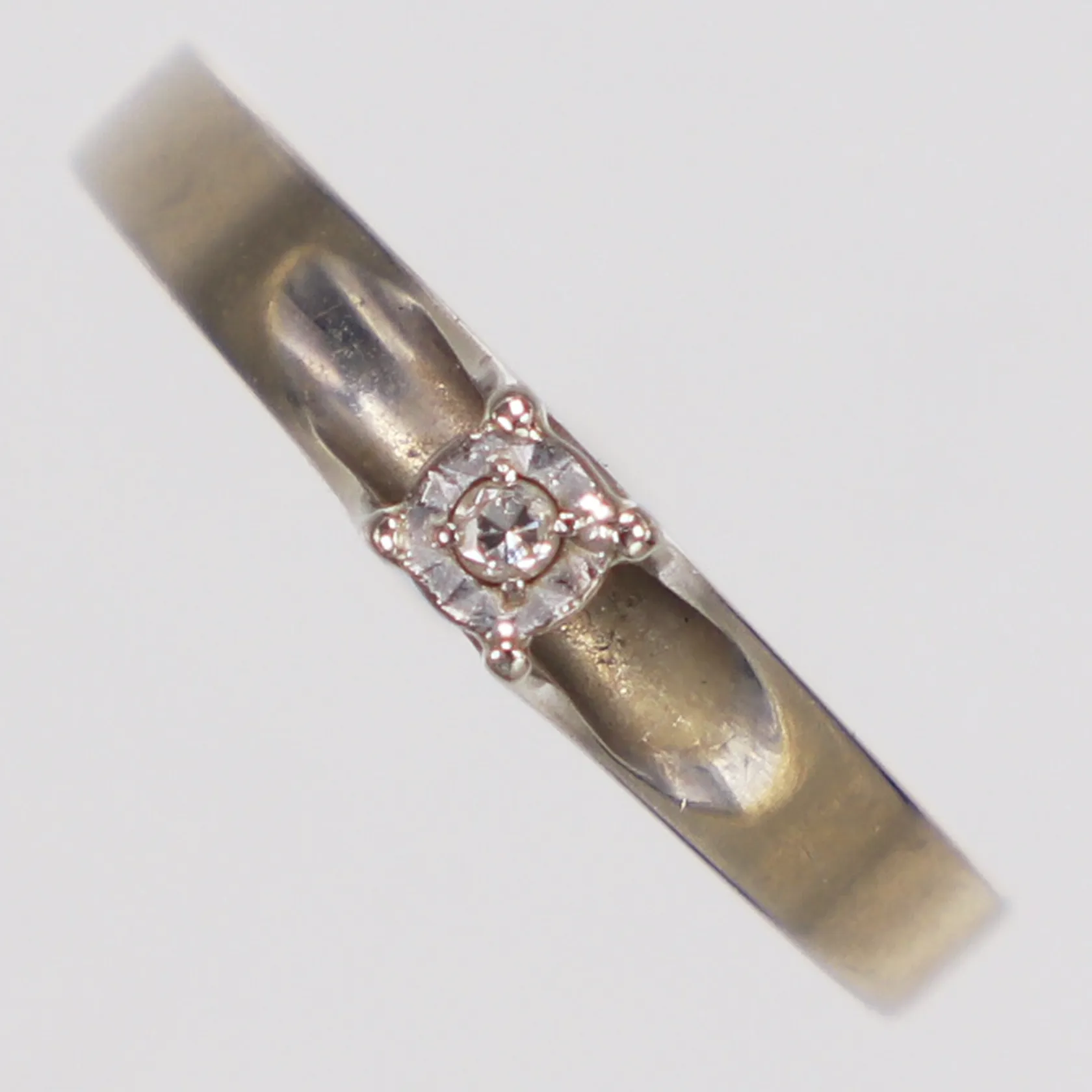Ring diamant 1 x ca0,018ct, stl 17¼, bredd 1,9-3,2mm, vitguld, 18K Vikt: 1,7 g.
