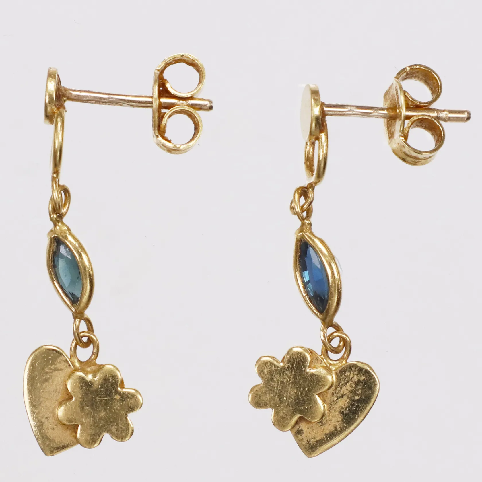 Ett par örhängen blåa stenar, längd 20mm, bredd 3,5-8mm, 18K Vikt: 2,1 g.