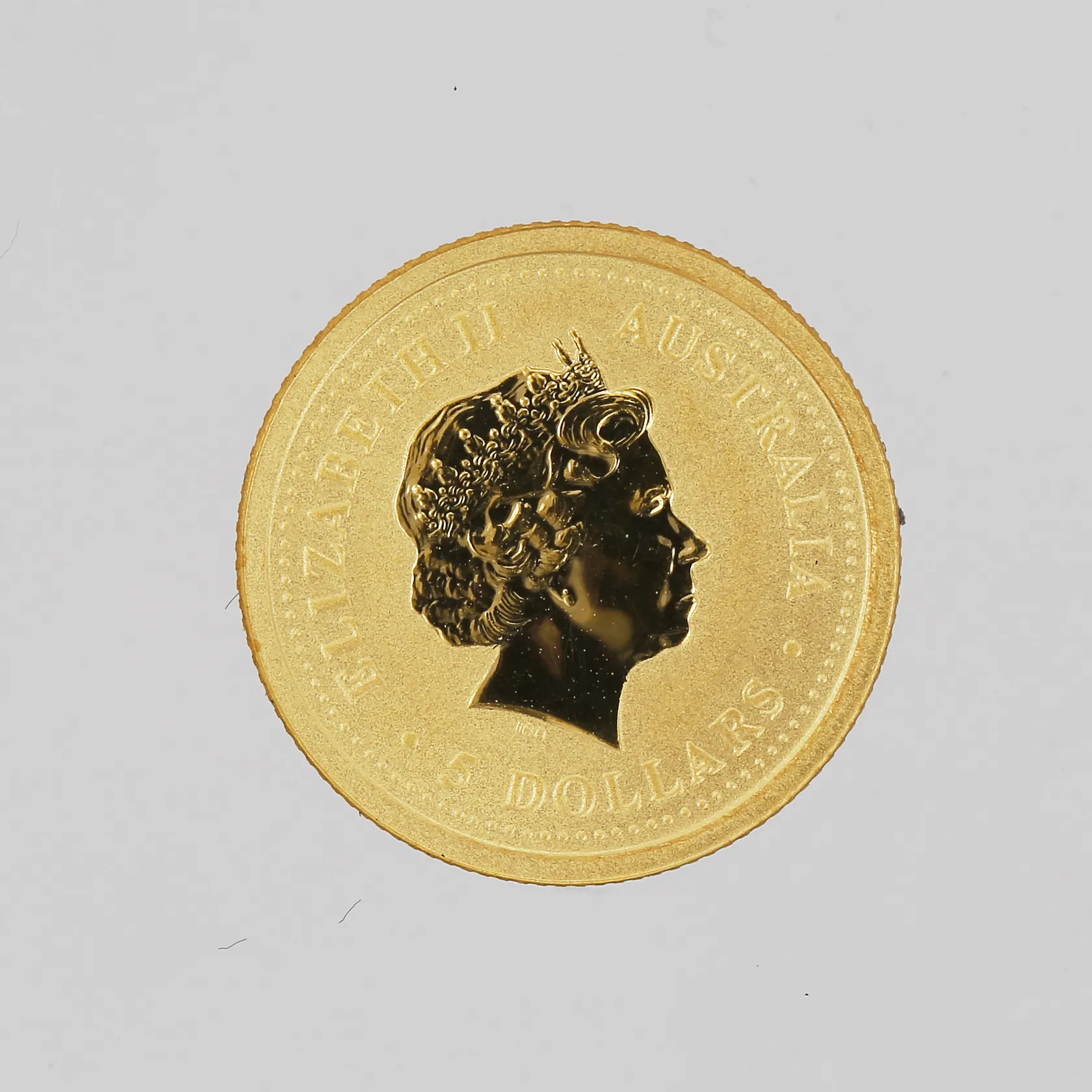 Mynt, 5 Dollars, Elizabeth II, Australien, 2001, i etui, ca Ø14mm, 24K guld. Vikt: 1,6 g.