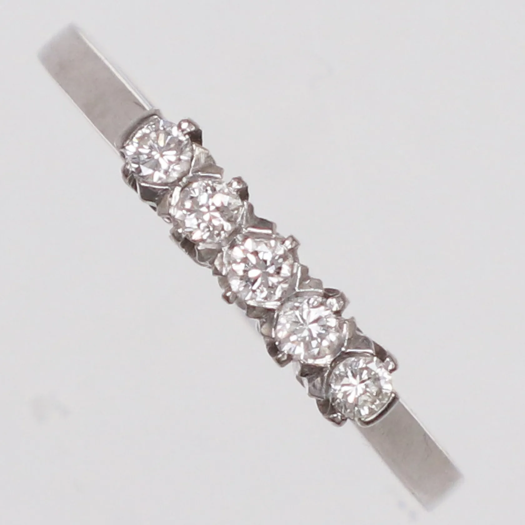 Ring diamanter 5 x ca0,03ct, Pettersson år 1964, stl 17¾, bredd 1,5-3mm, vitguld, 18K Vikt: 2,3 g.