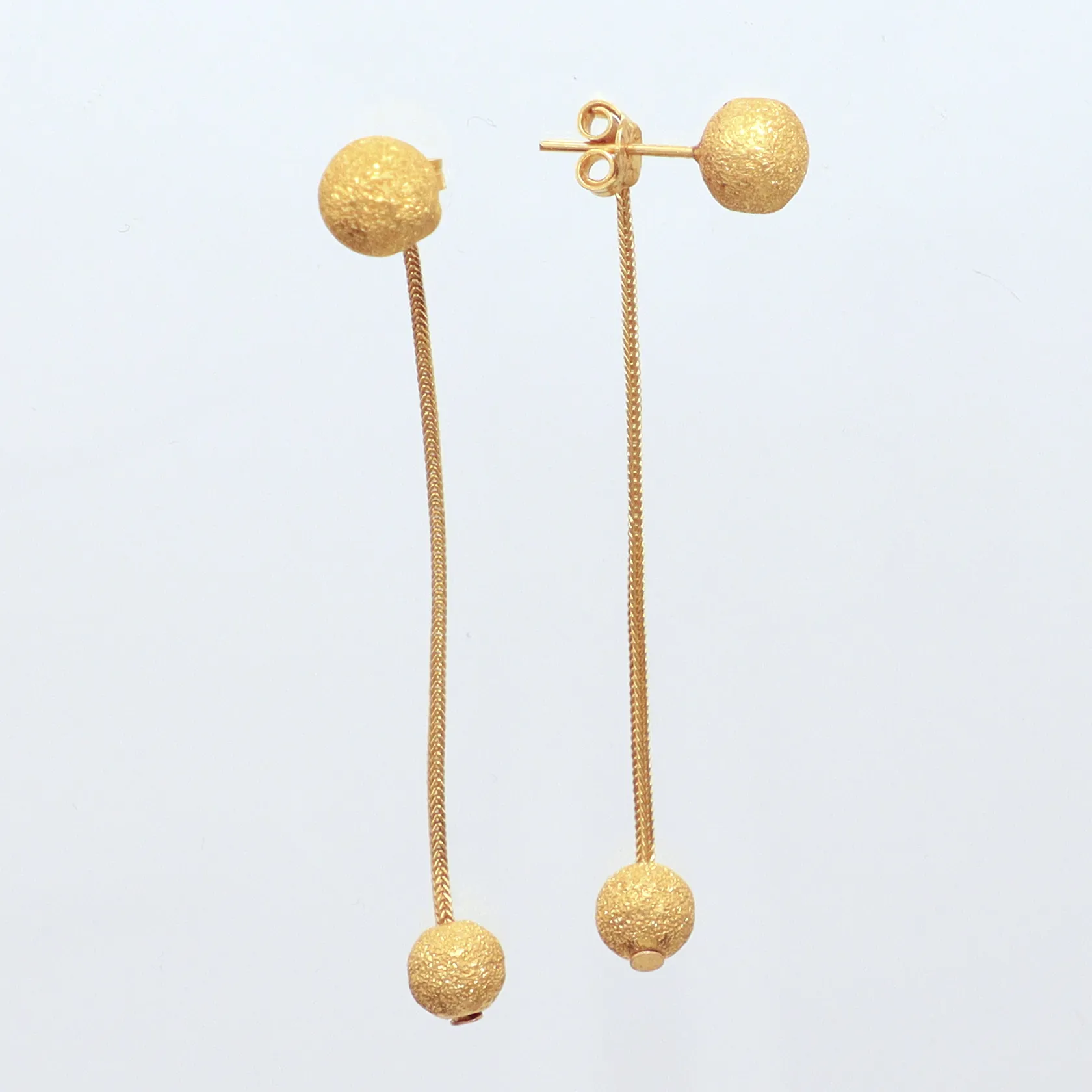 Ett par örhängen längd 6cm kulor Ø8.1mm, 21K Vikt: 5,1 g.