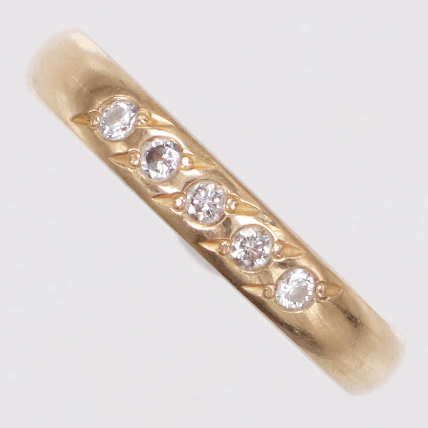 Ring diamanter 5 x ca0,01ct, stl 15½, bredd 3mm, Schalin, 18K Vikt: 2,3 g.