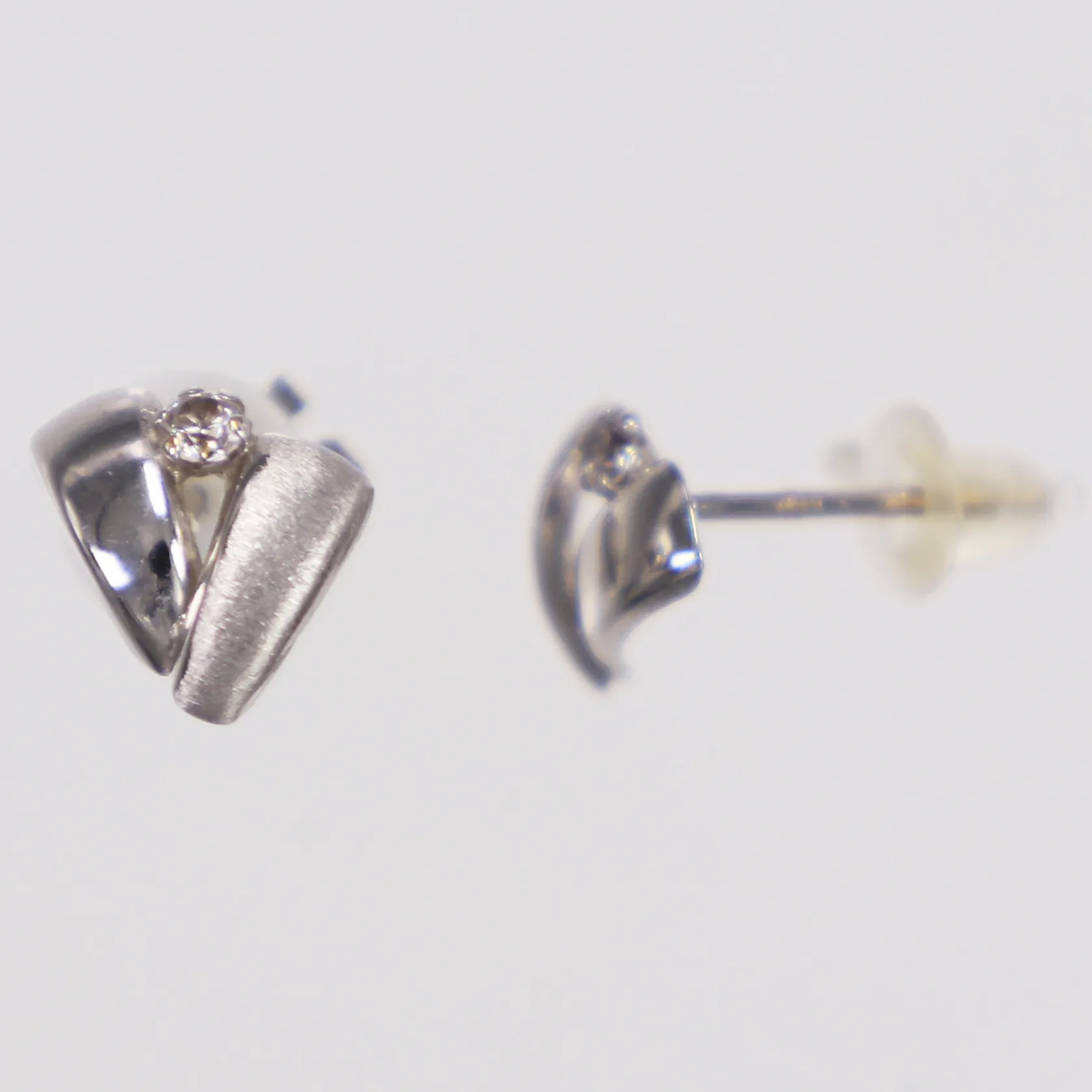 Ett par örhängen vit sten, 2,8x3,1mm, delvis matterade, vitguld, omaka plaststoppar, 18K Vikt: 0,7 g.