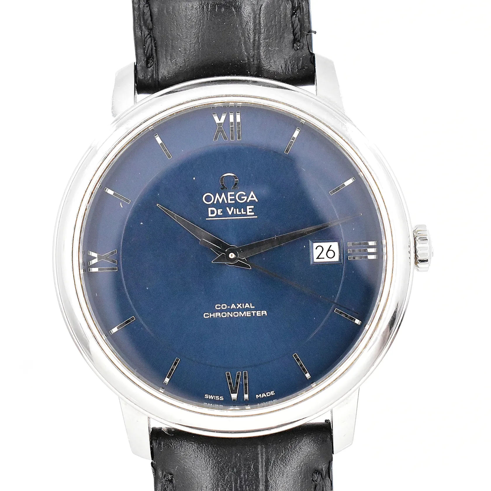 Herrur Omega De Ville Prestige Co-Axial, stål Ø 39,5 mm, automatisk, ref.nr.42413402003001, kaliber 2500, läderband, international warranty 2016, pictograms, instruktionsbok, box, ytterkartong