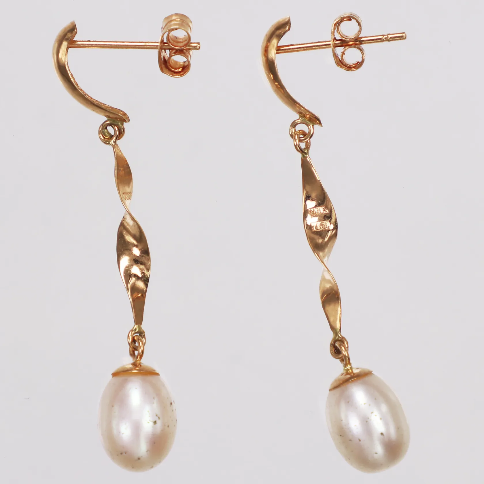 Ett par örhängen odlade sötvattenpärlor, längd 40mm, bredd 3-6mm, 18K Vikt: 2 g.