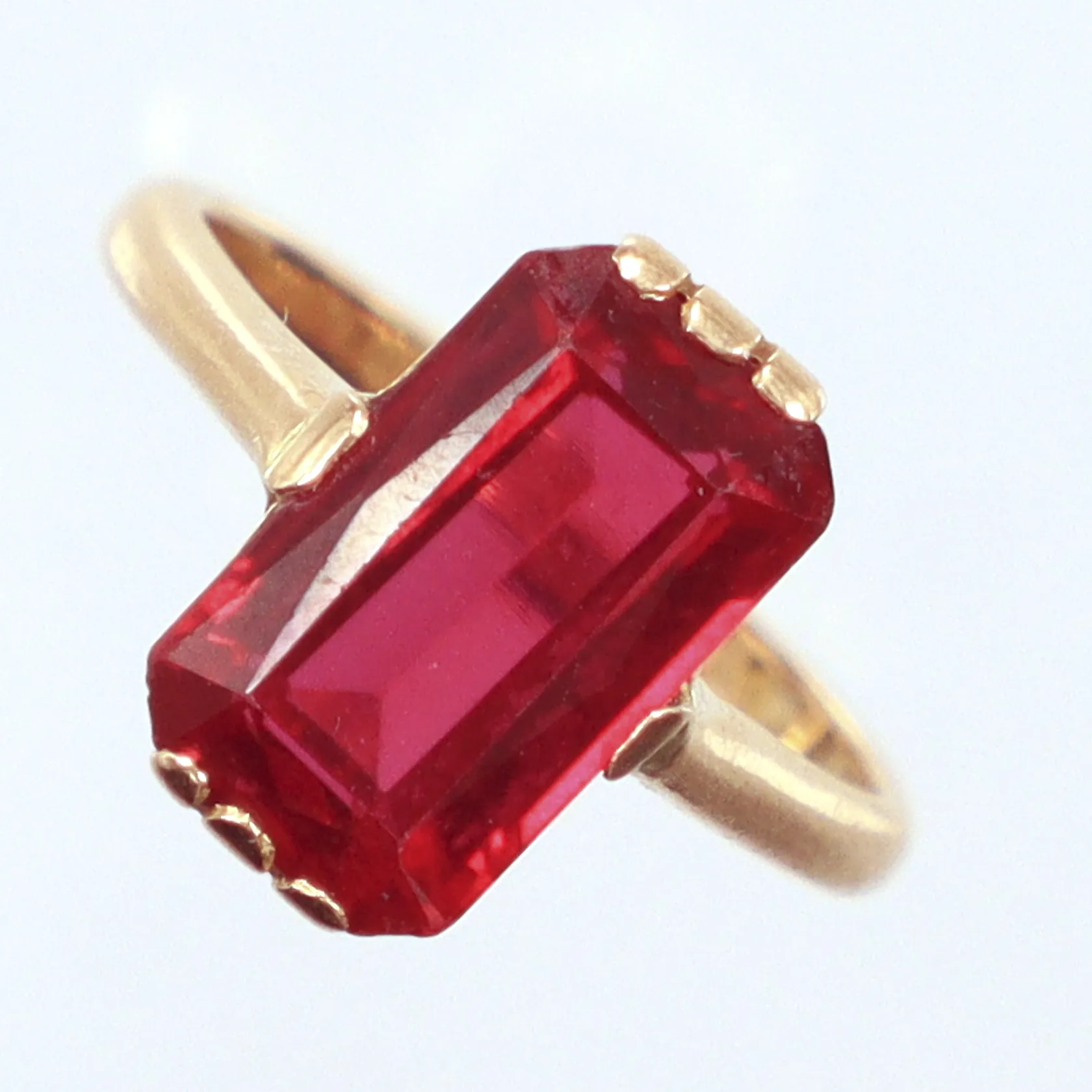 Ring röd sten Ø15¼, Frids Guldatelje Oscar A år 1944, 18K Vikt: 3,4 g.