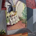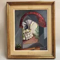 Oljemålning signerad G.Kind 1958 motiv bön vid altaret, ca 30x40cm, i sliten ram Skickas med postpaket.