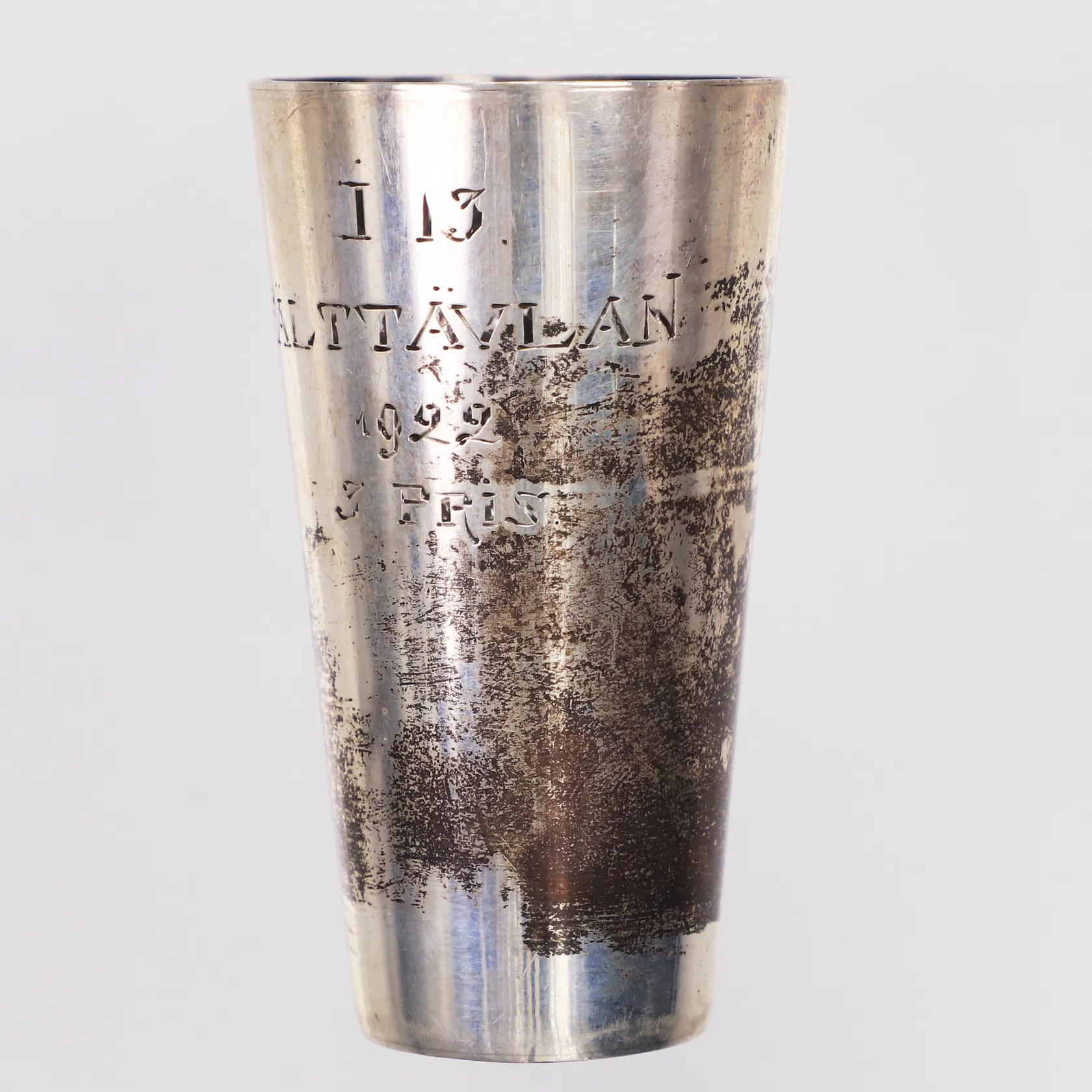 Bägare år 1922, höjd 6cm, gravyr, silver Vikt: 28,6 g.