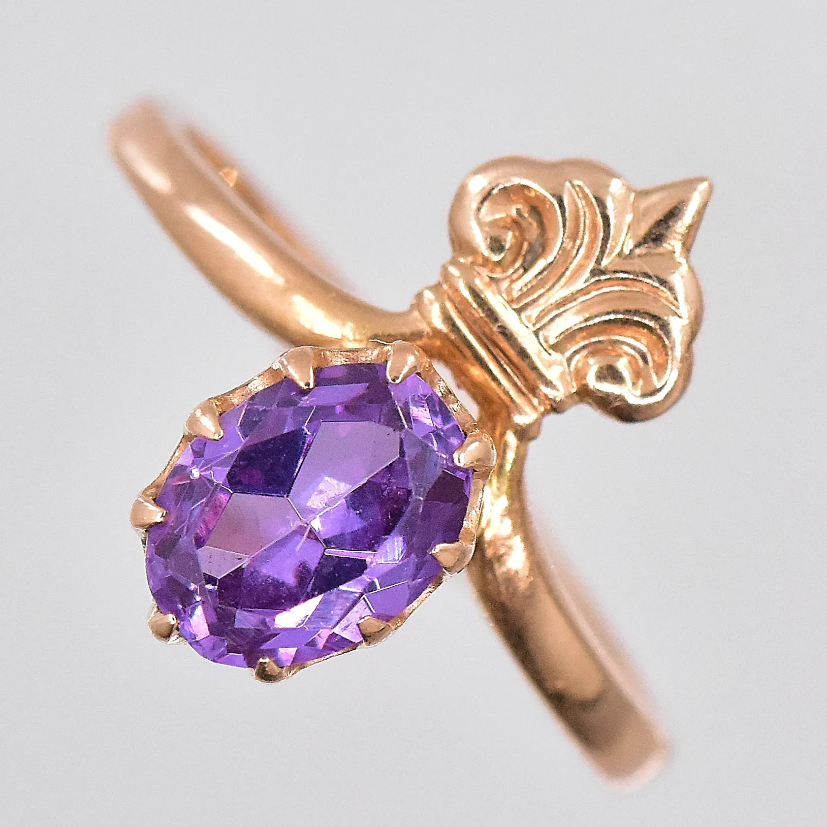 Ring lila sten, stl 17¼, 14K Vikt: 3 g.
