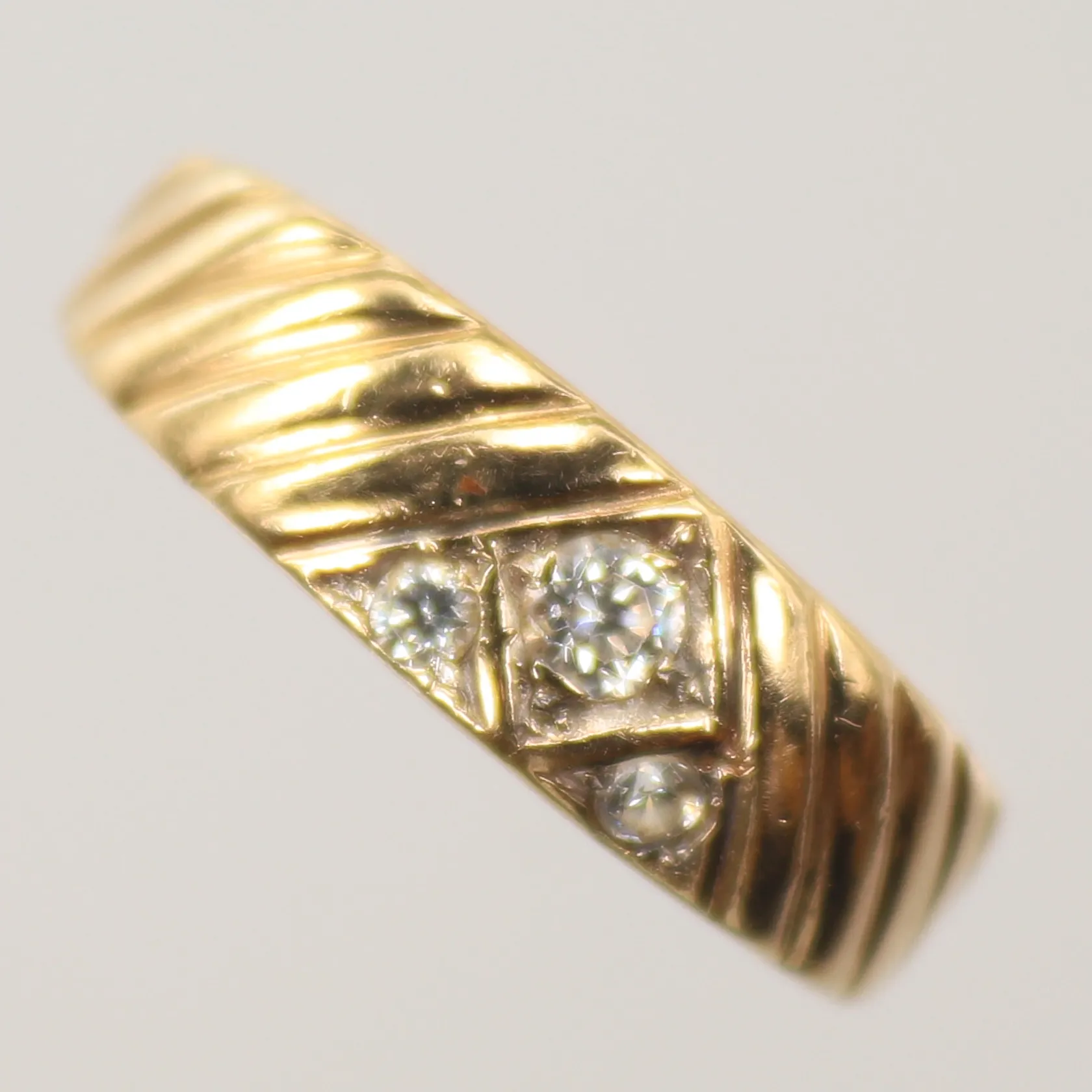 Ring med 3 vita stenar, stl 17¼, bredd 2-6 mm, 14K 3g Vikt: 3 g.