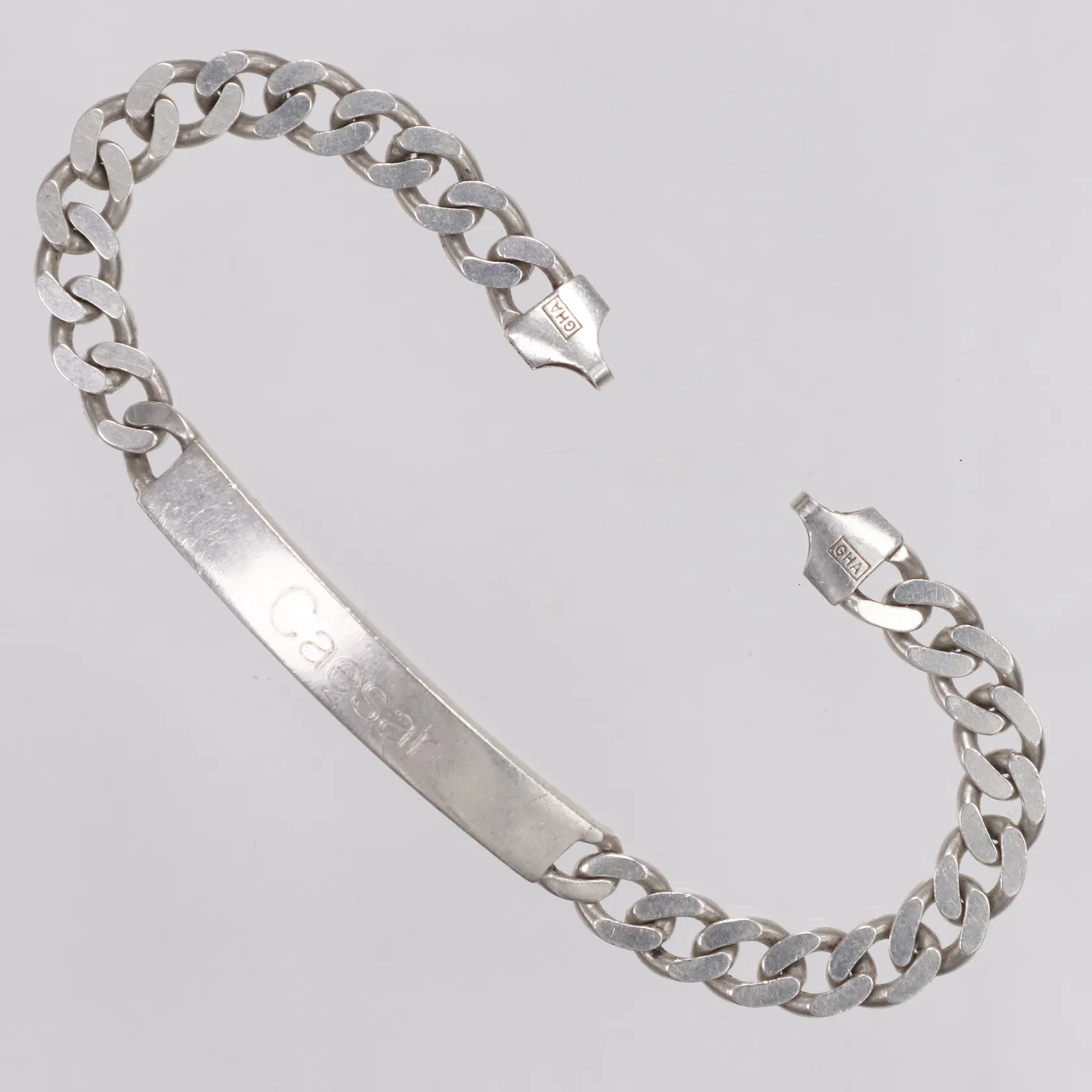 Armband Pansar integrerad namnbricka, längd 18cm, bredd 6,5mm, GHA, gravyr, lås saknas, 925/1000 silver Vikt: 15,6 g.