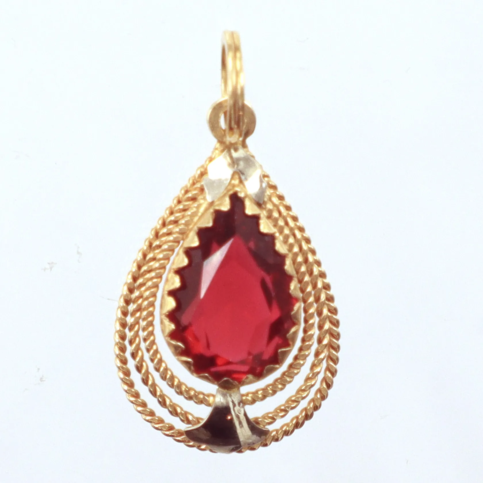Hänge röd sten längd 35mm bredd 18mm 18K Vikt: 4,7 g.