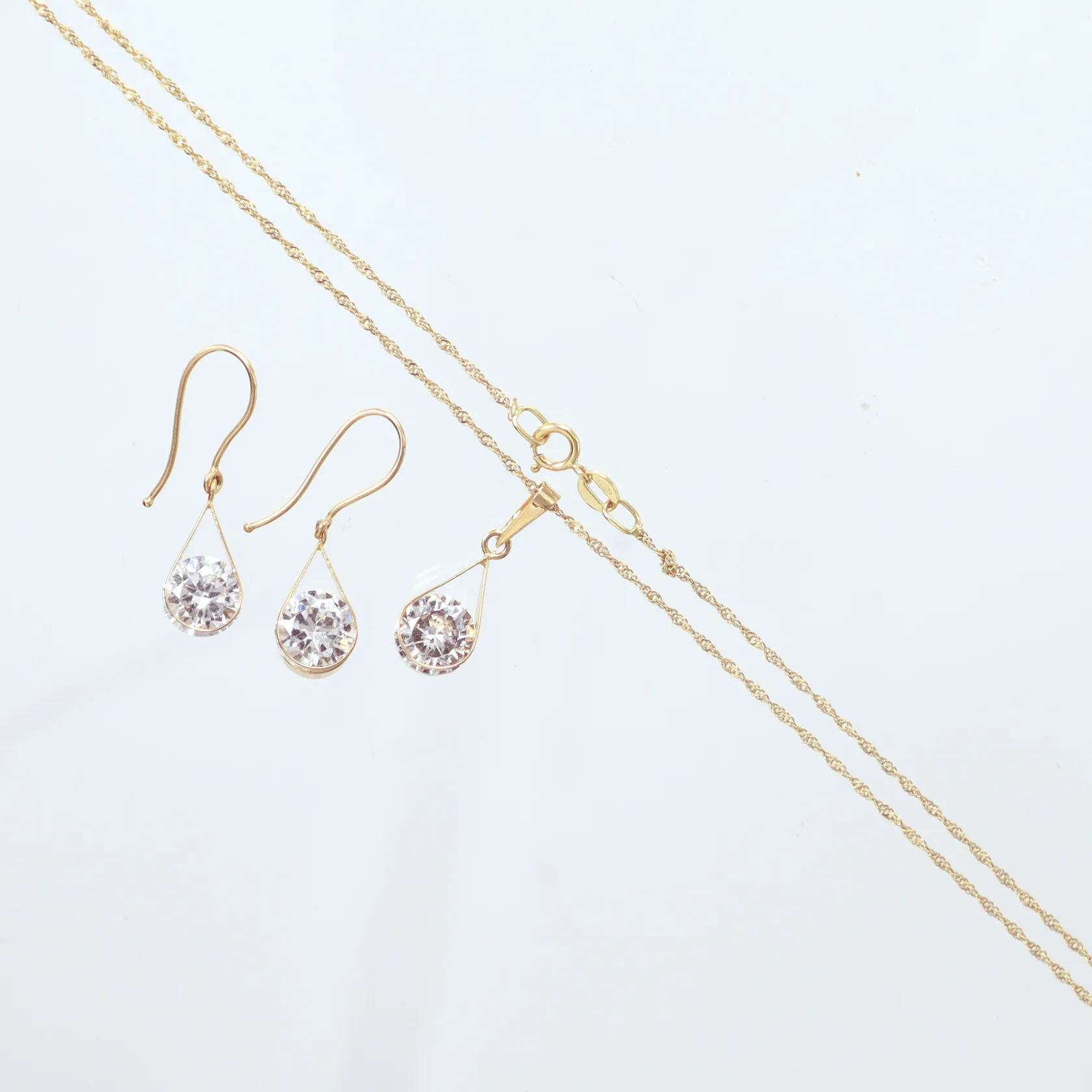 Set Kedja Singapore med hänge vit sten längd 41cm ett par örhängen vita stenar 2cm, 18k Vikt: 3,5 g.