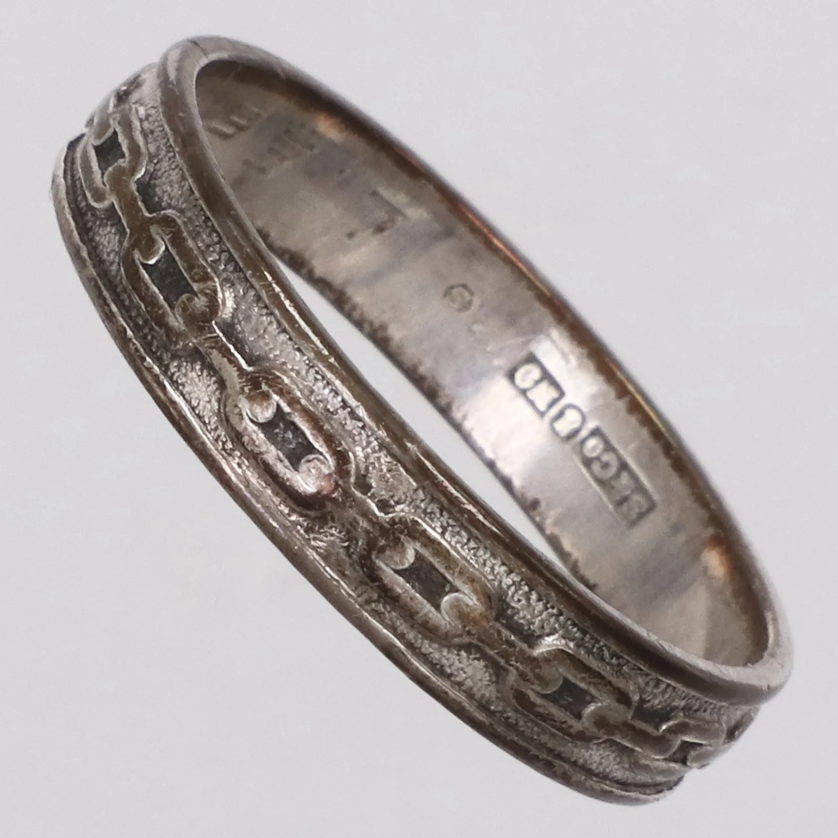 Ring dekor, stl 21, bredd 4,8mm, Metallfabriks A/B C C Sporrong, gravyr, silver Vikt: 3,7 g.