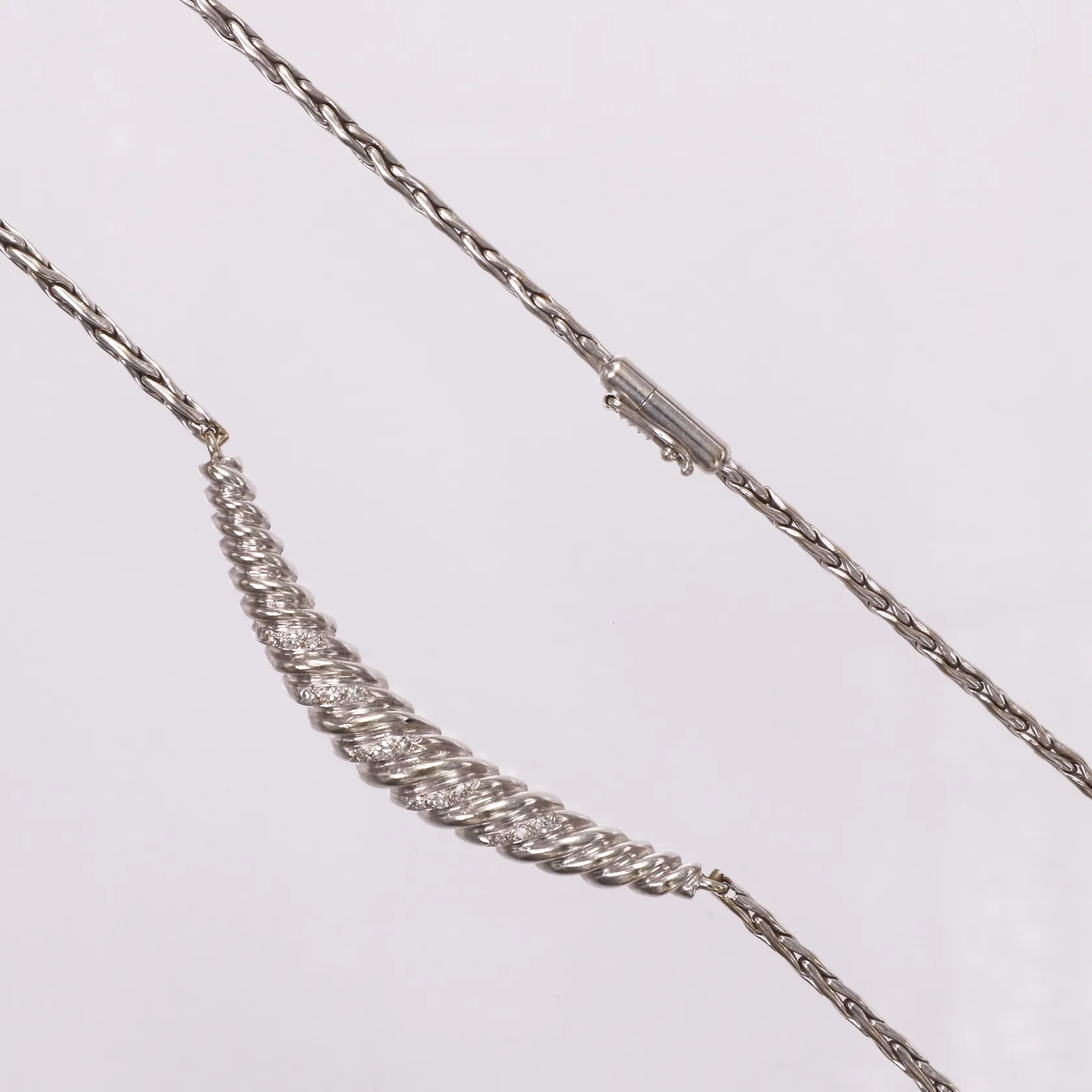 Collier diamanter 15 x ca0,01ct, längd 44cm, bredd 2-7,7mm, halvstelt, vitguld, 18K Vikt: 22,9 g.