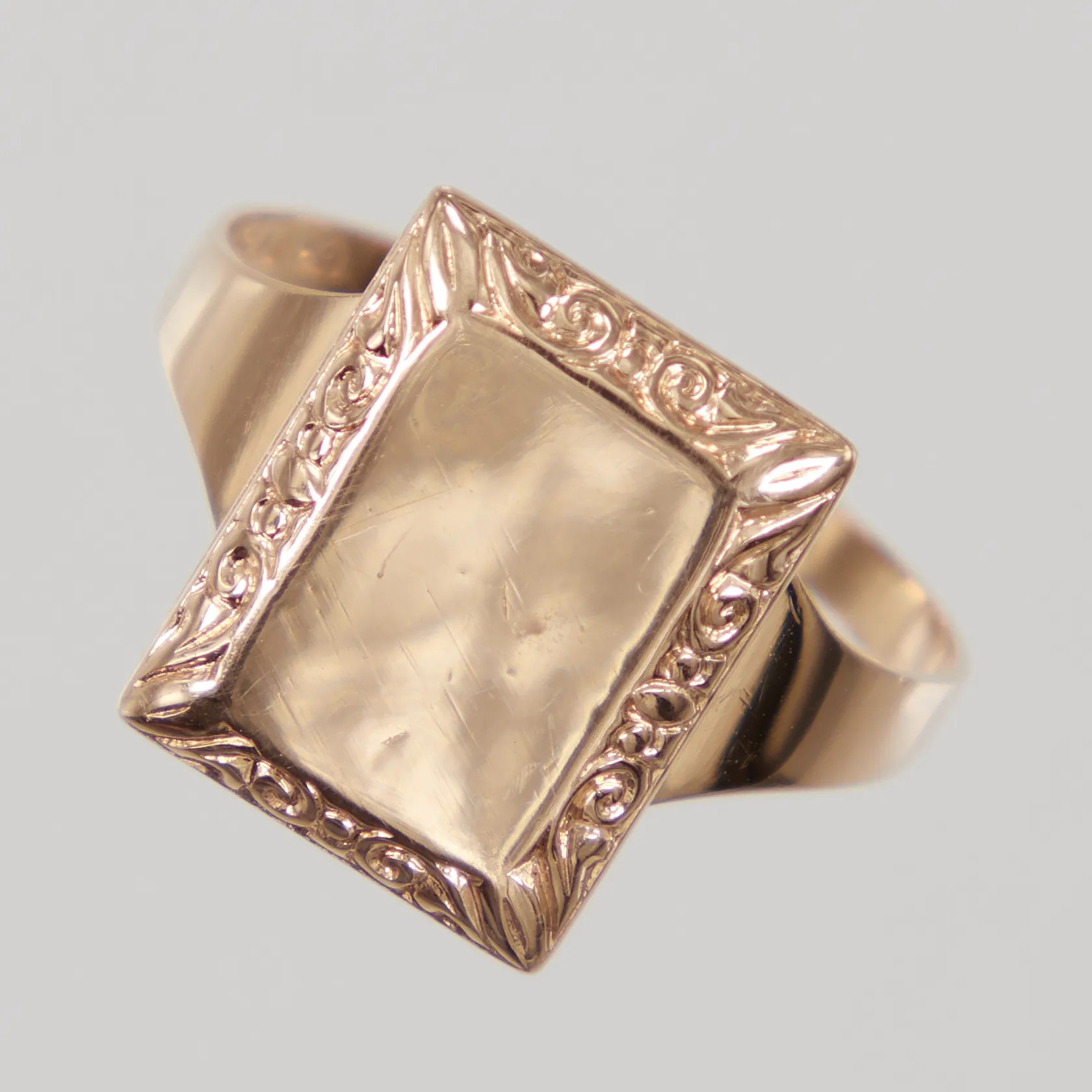 Ring, stl 18¼, fattning 10,9x13,9mm, repor/gravyr, Falun 1948, 18K Vikt: 2,2 g.