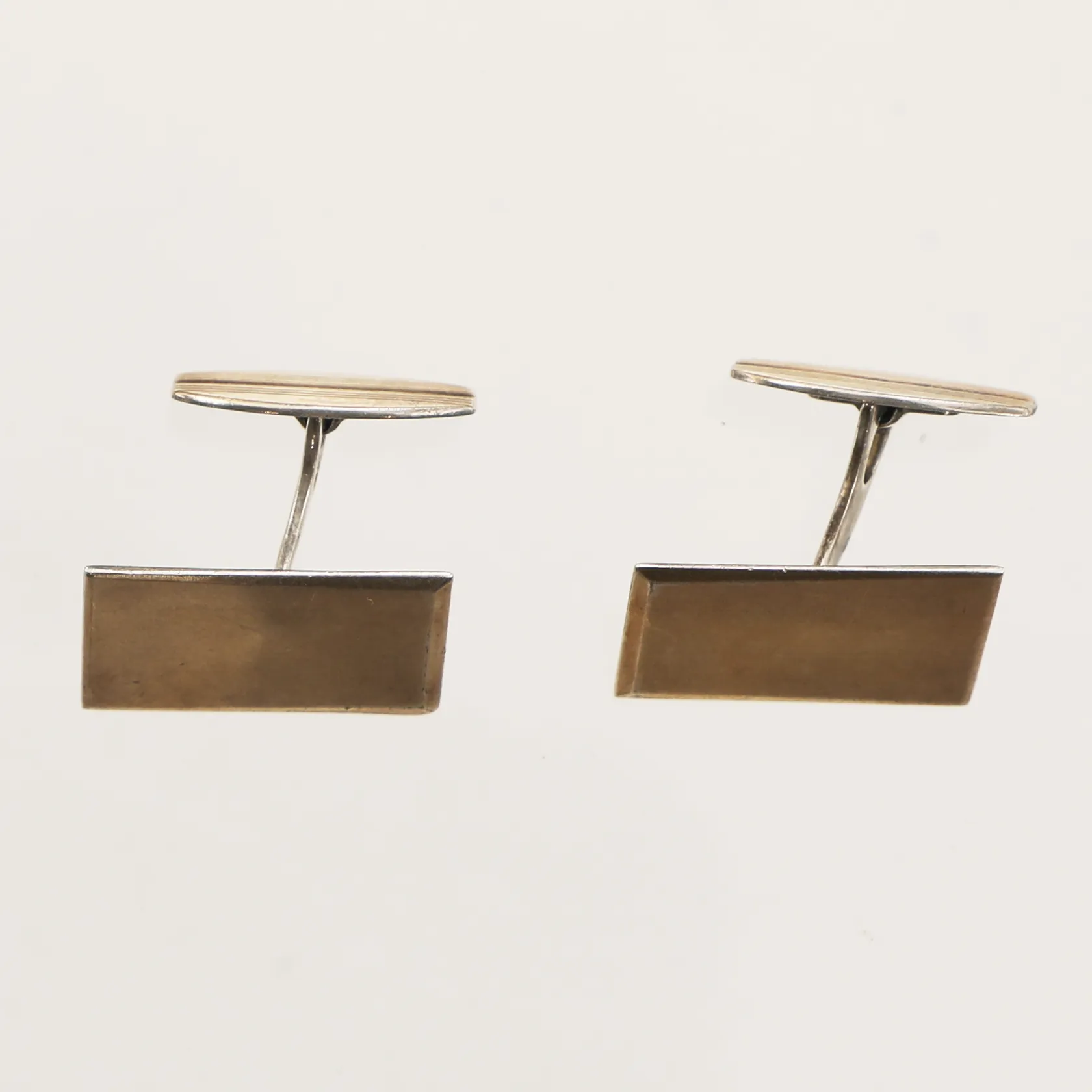 Ett par manschettknappar, längd 12,5mm, bredd 21mm, repiga, förgyllda, 830/1000 silver Vikt: 7 g.