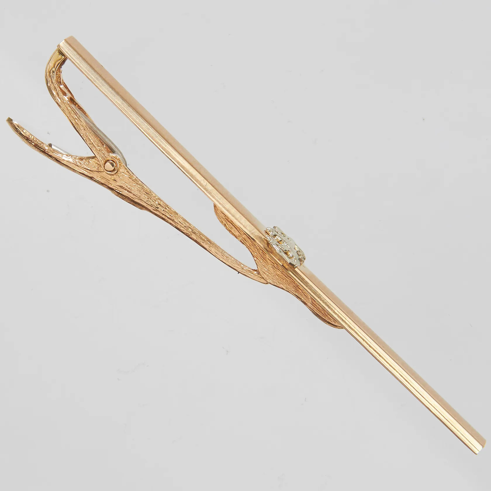 Slipsklämma, längd ca 63mm, bredd 4,2-7mm, finska stämplar, 14K Vikt: 3,8 g.