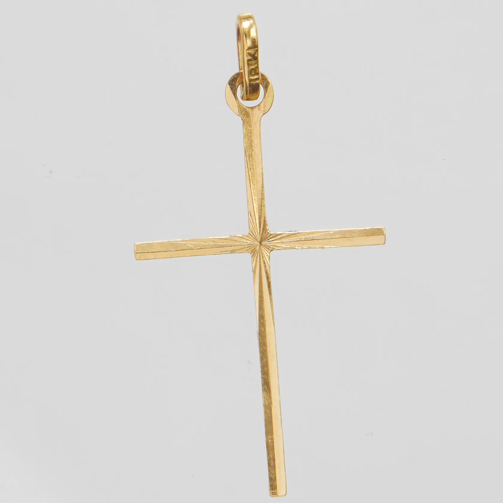 Hänge kors, längd ca 30mm, bredd 1-15,5mm, 18K Vikt: 0,6 g.