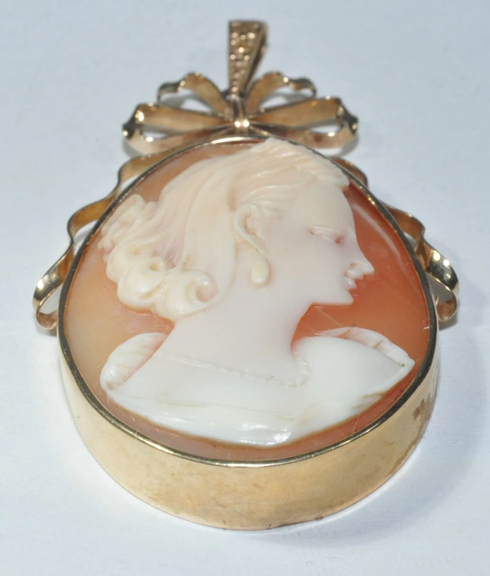 Vacker äldre Camé 18k 8,6 gr L 5,5 cm Vikt: 8,6 g.