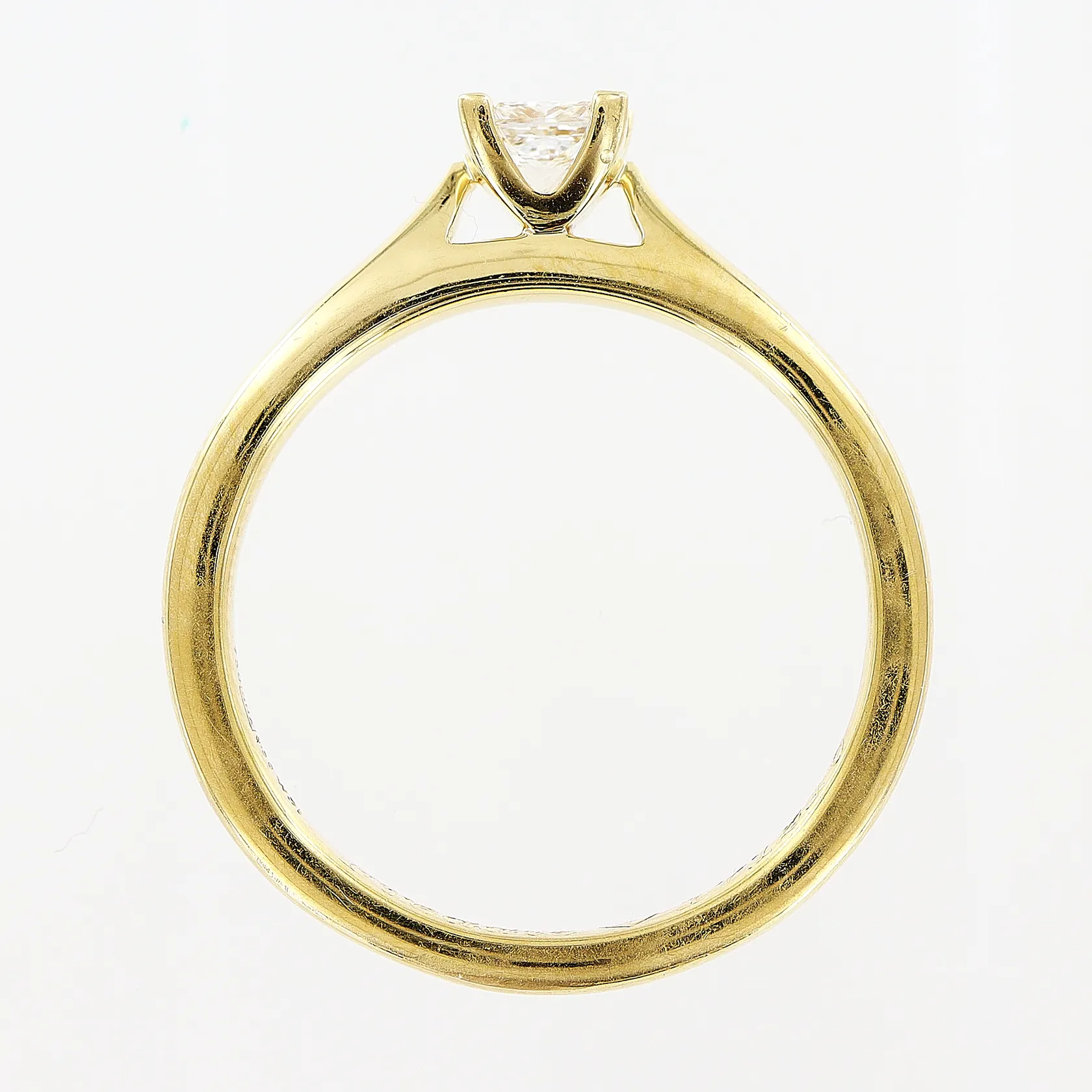 Ring, diamant 0,50ct WSI enligt gravyr, prinsesslipad diamant, stl 18¾, bredd 2,5-5mm, kvalitetsintyg, gravyr, 18K. Vikt: 5,9 g.
