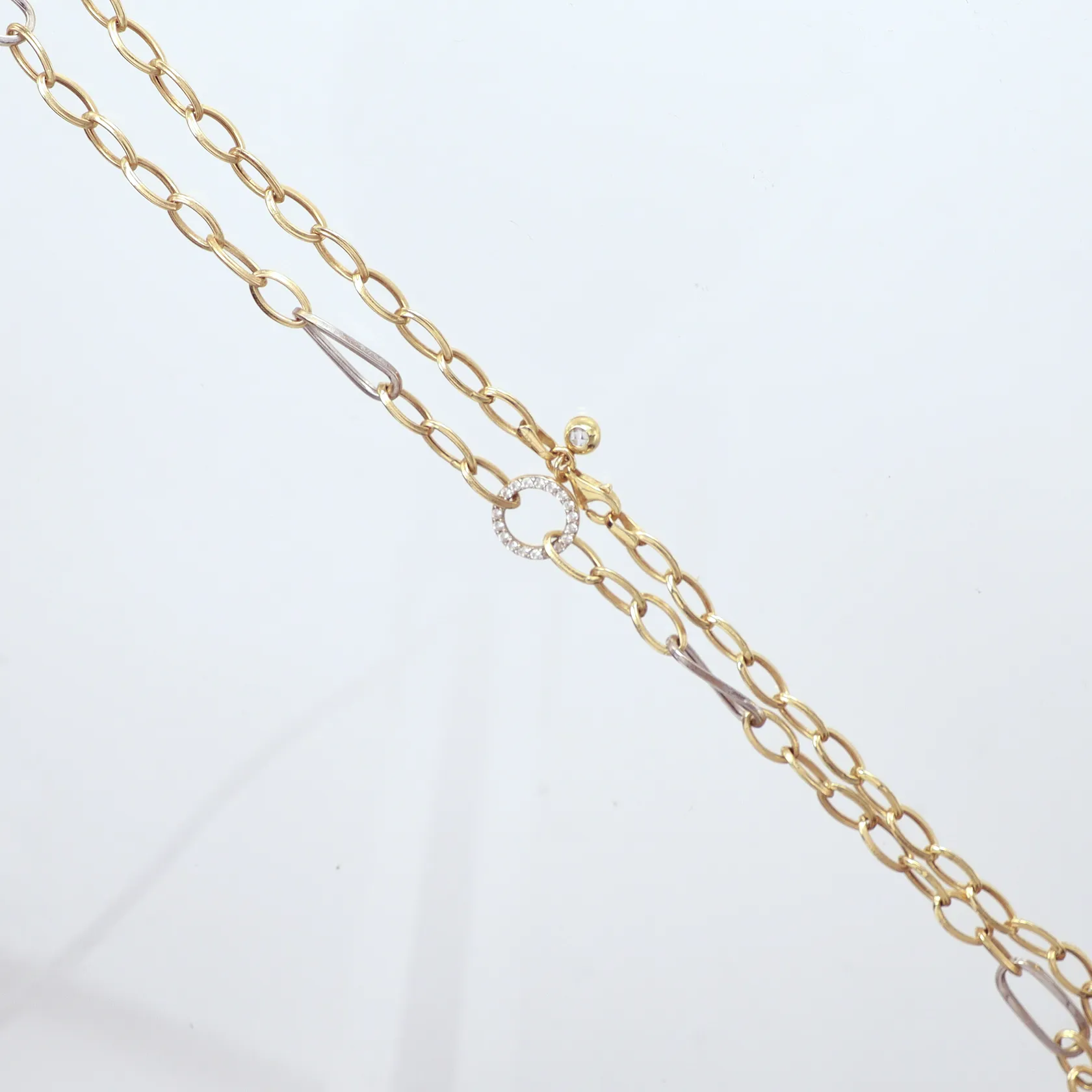 Collier tvåfärgat, längd 48,5cm, bredd 6,1mm, små vita stenar,14K Vikt: 6,8 g.