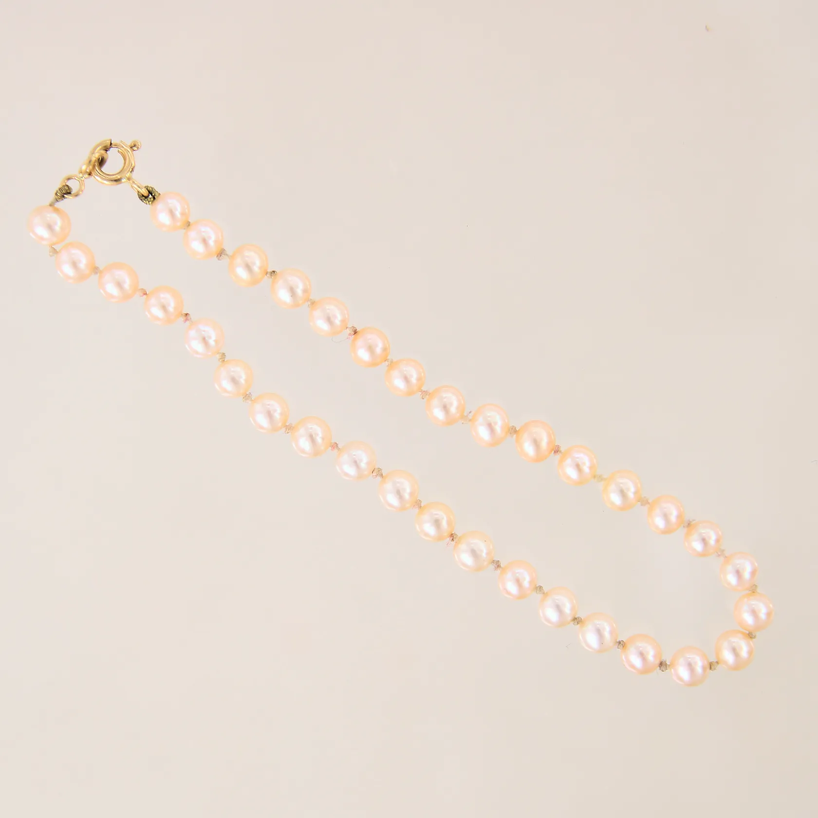 Armband med odlade sötvattenpärlor, längd 20,5cm, bredd 5mm, lås i 18K, något glest mellan pärlorna, bruttovikt: 4,9g Vikt: 5 g.