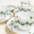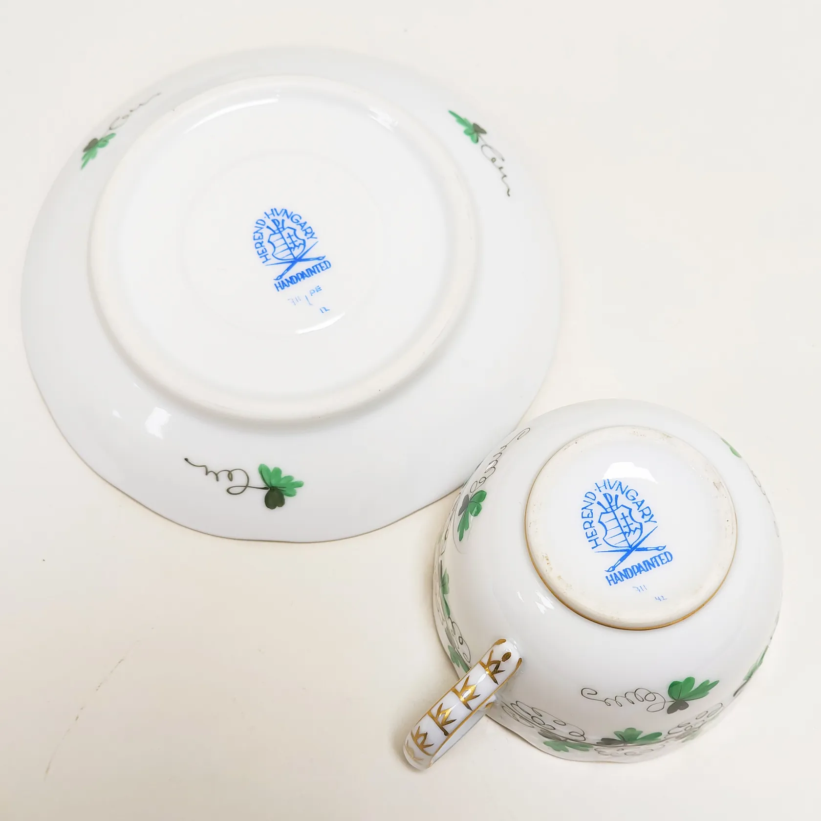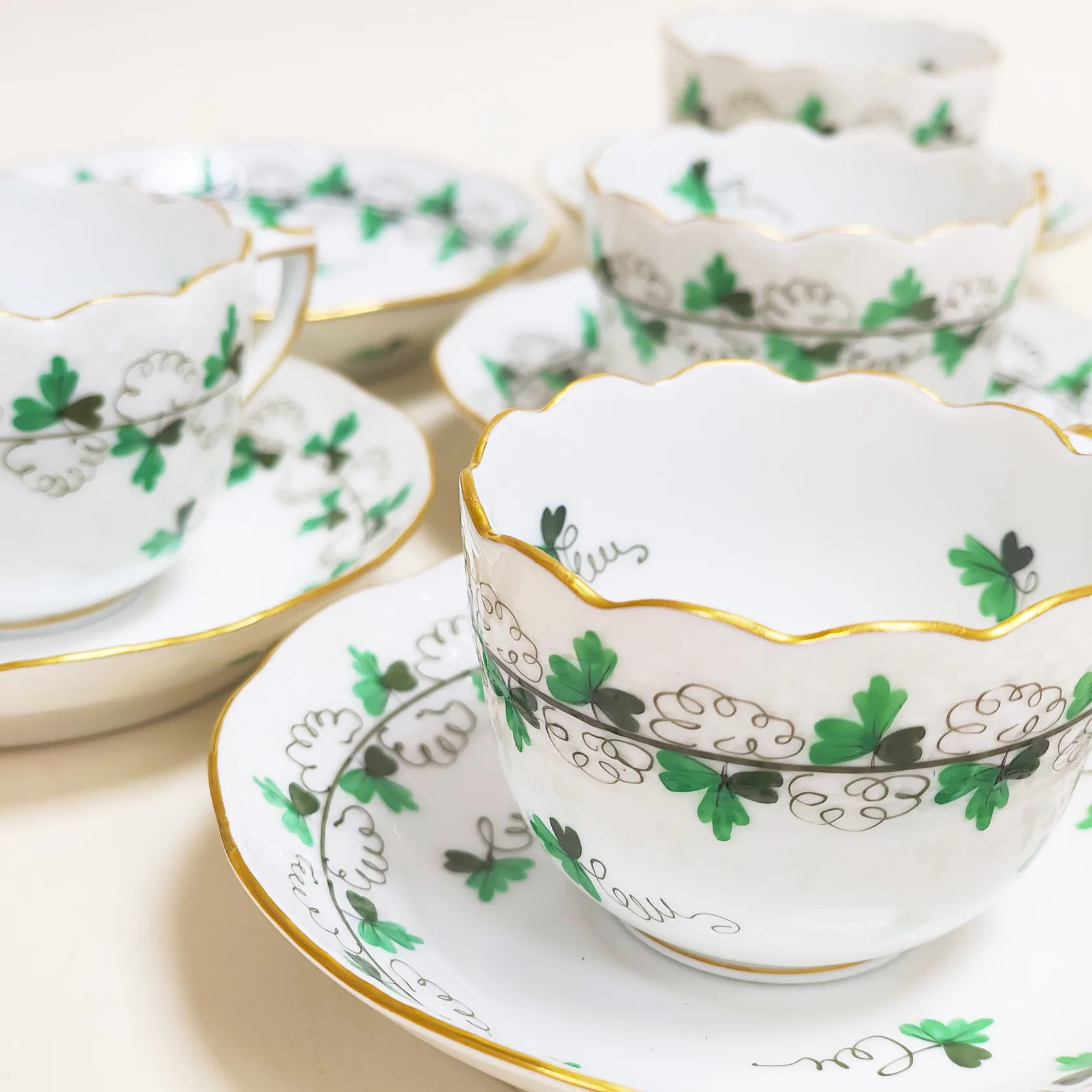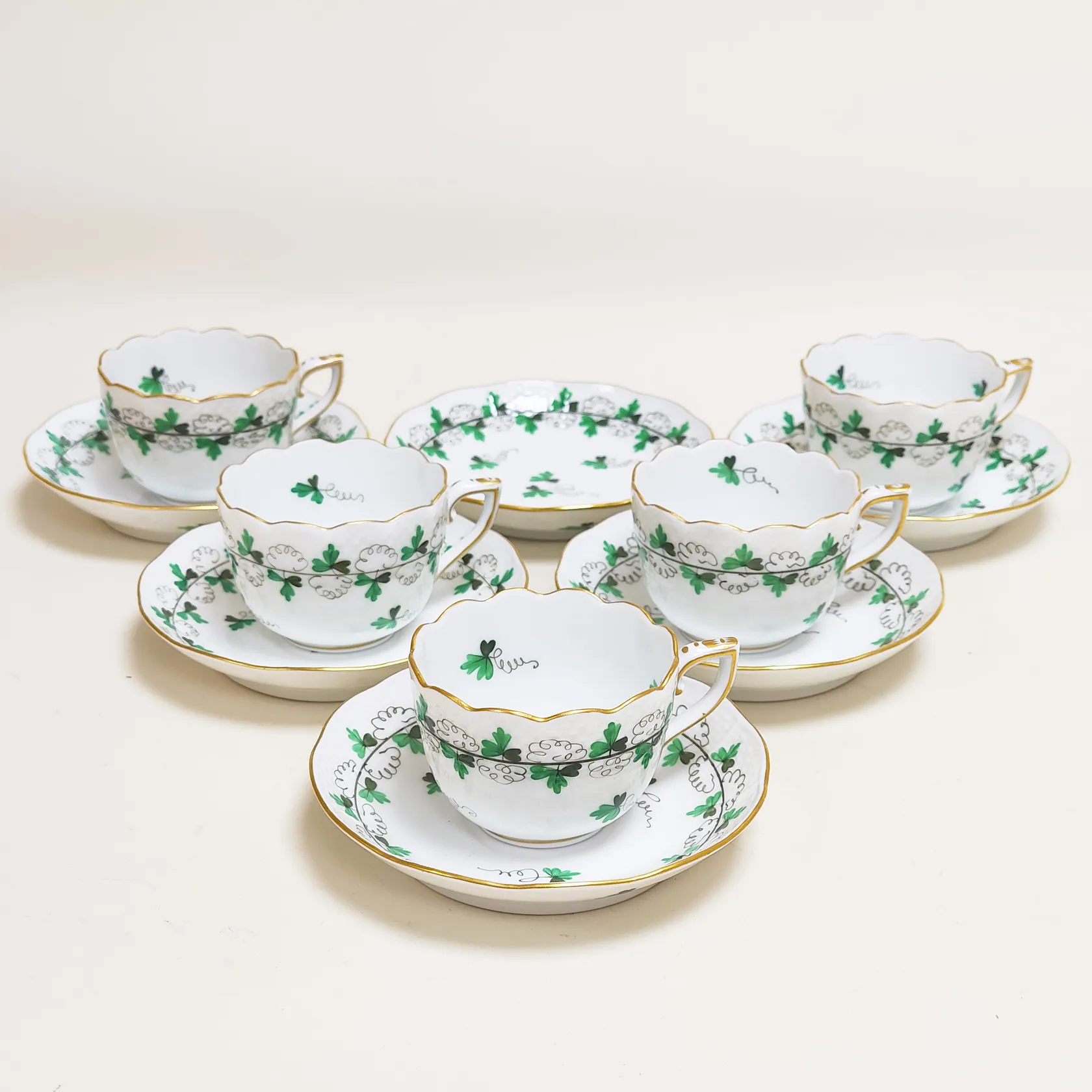 Fem kaffekoppar, sex fat, Herend Parsley Green, Ø 11,5cm, modell 711, handmålad, porslin.