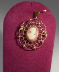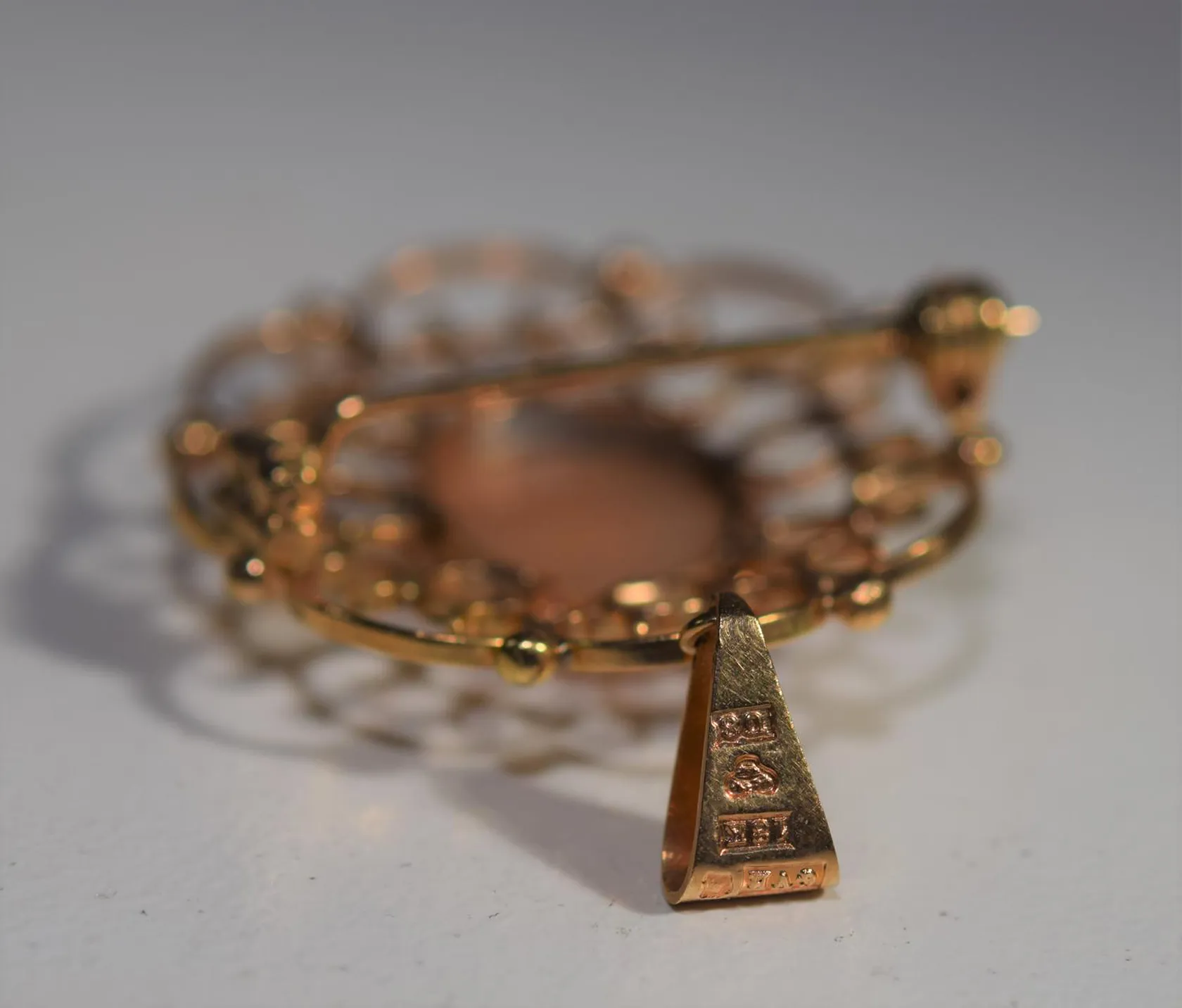Brosch camé år 1946, längd 4 cm. bredd 4 cm, 18k Vikt: 5,4 g.