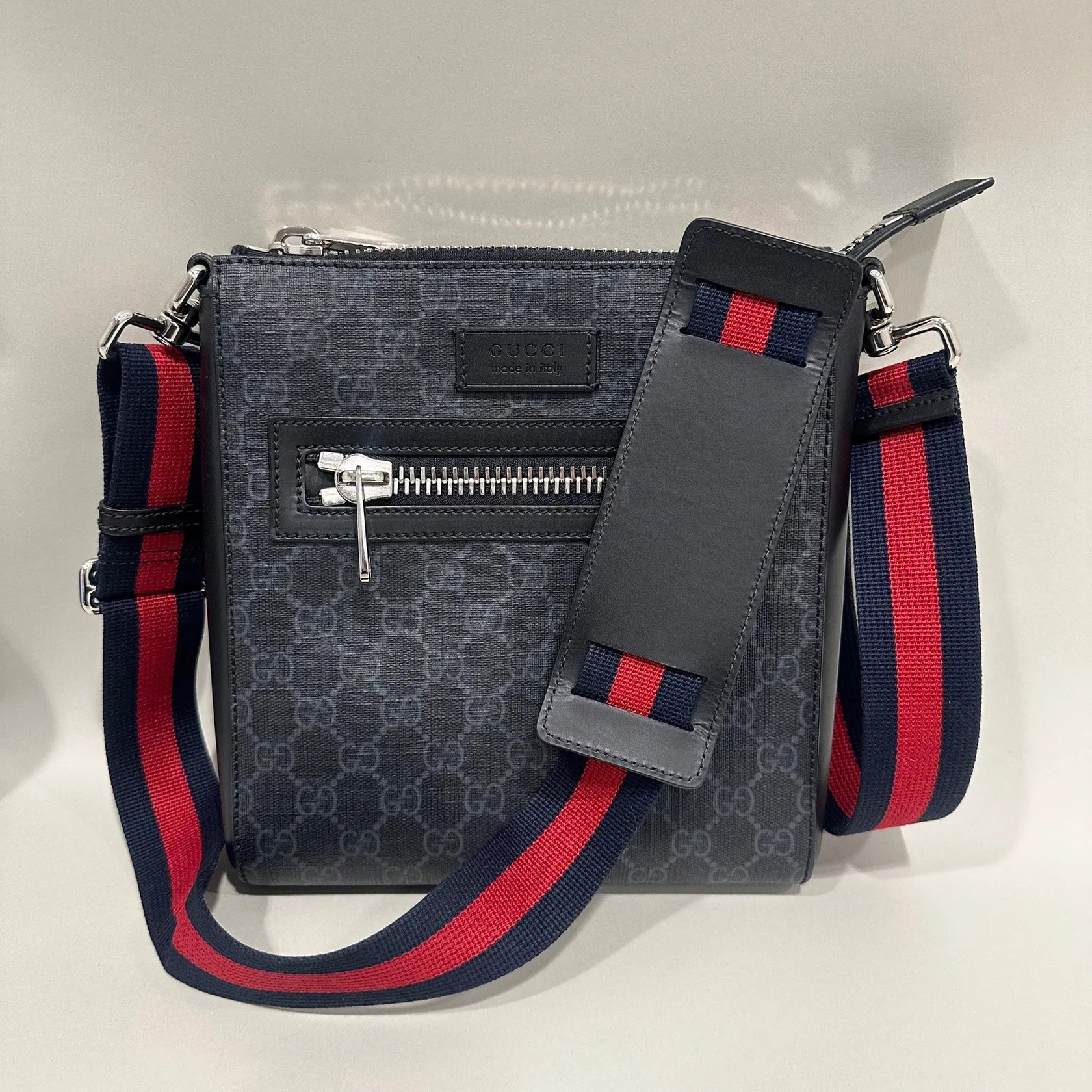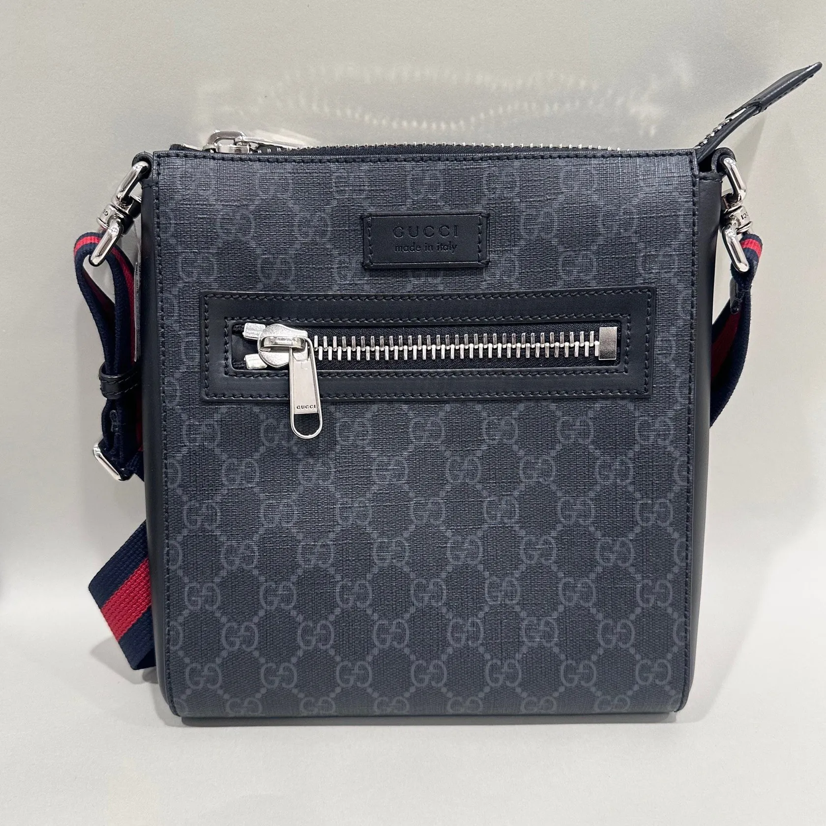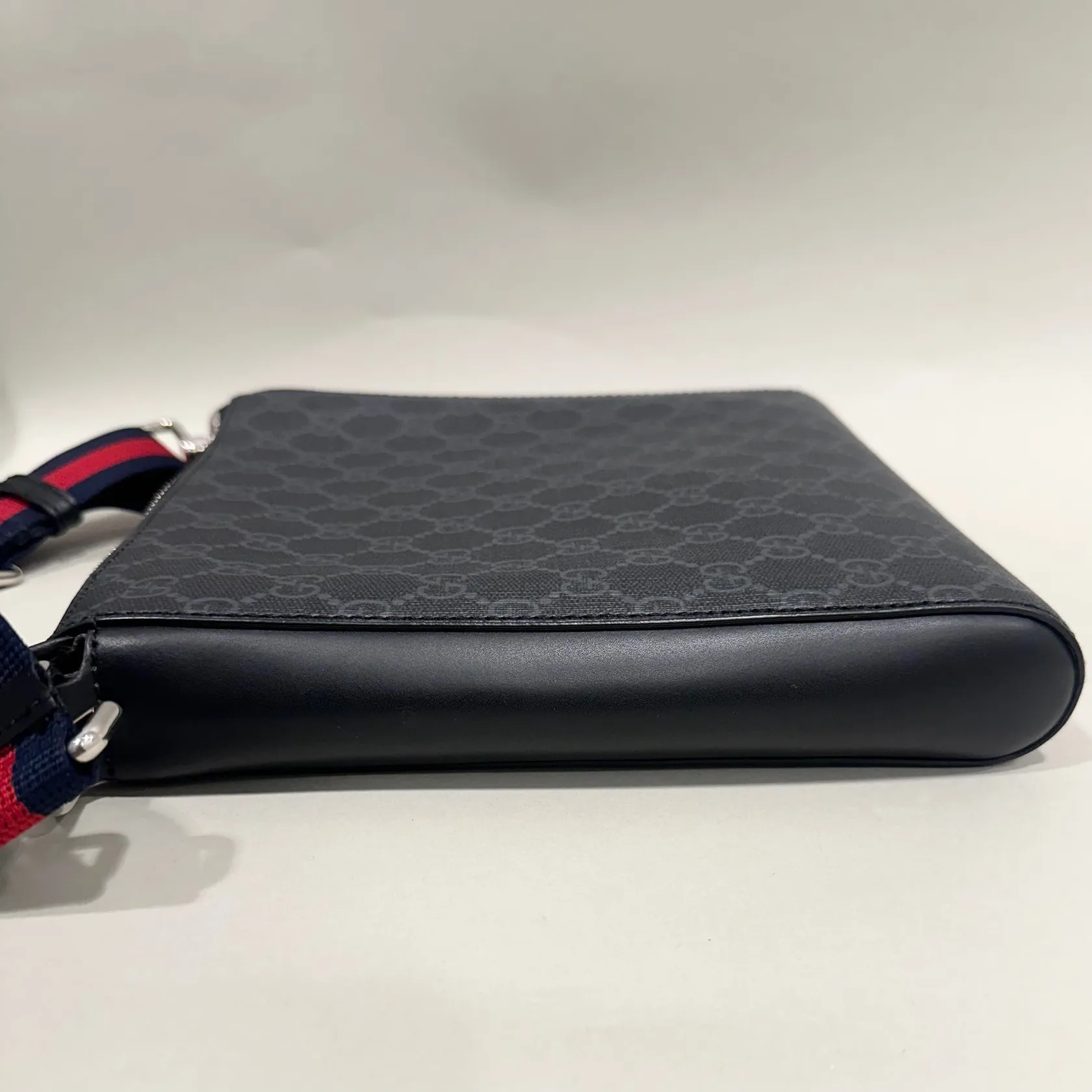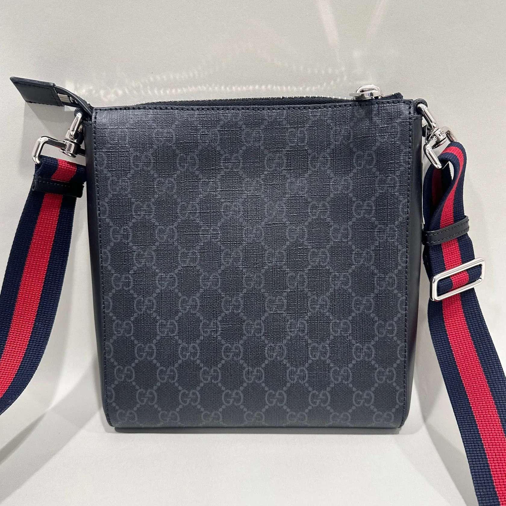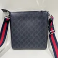 Väska Gucci GG Supreme Black small Messenger bag, kvitto Birger Jarlsgatan 2022, axelrem, manualer, serie-nr: 523599/525941, ca 23,5x21,5x4cm, svart läder, inga övriga tillbehör