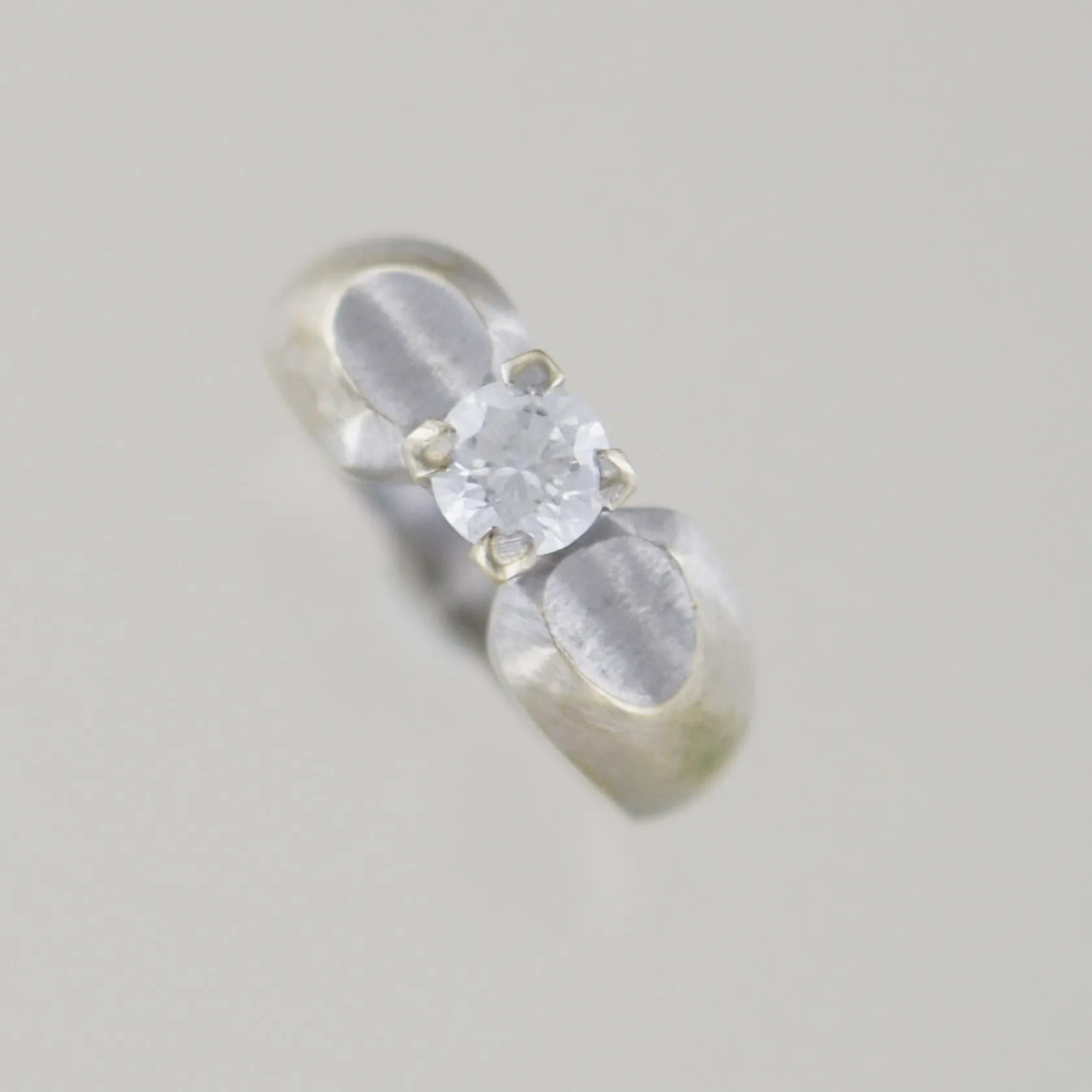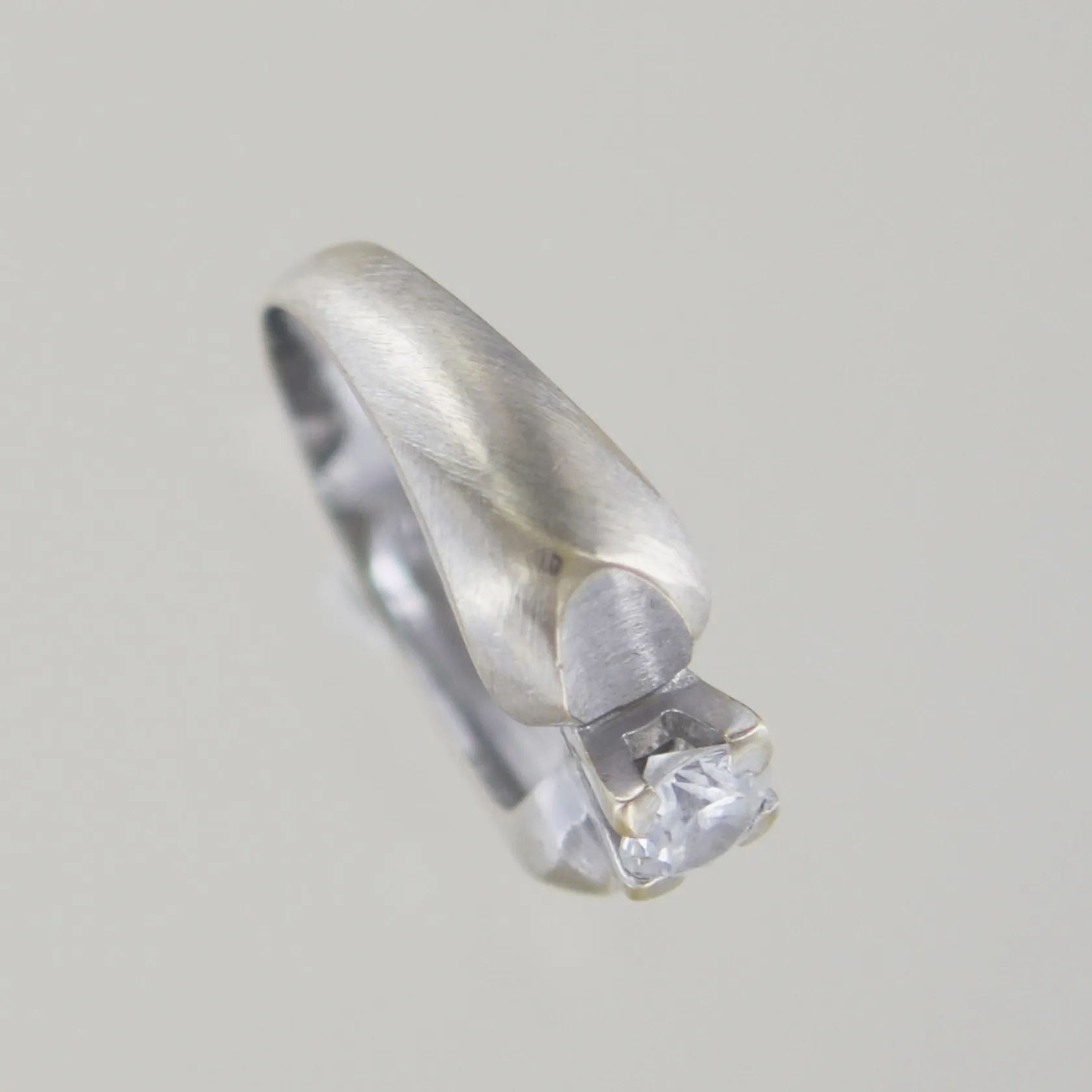 Ring i vitguld med briljantliknande sten 18k 5,1 gr Ø 17 mm. Borstat guld. Vikt: 5,1 g.