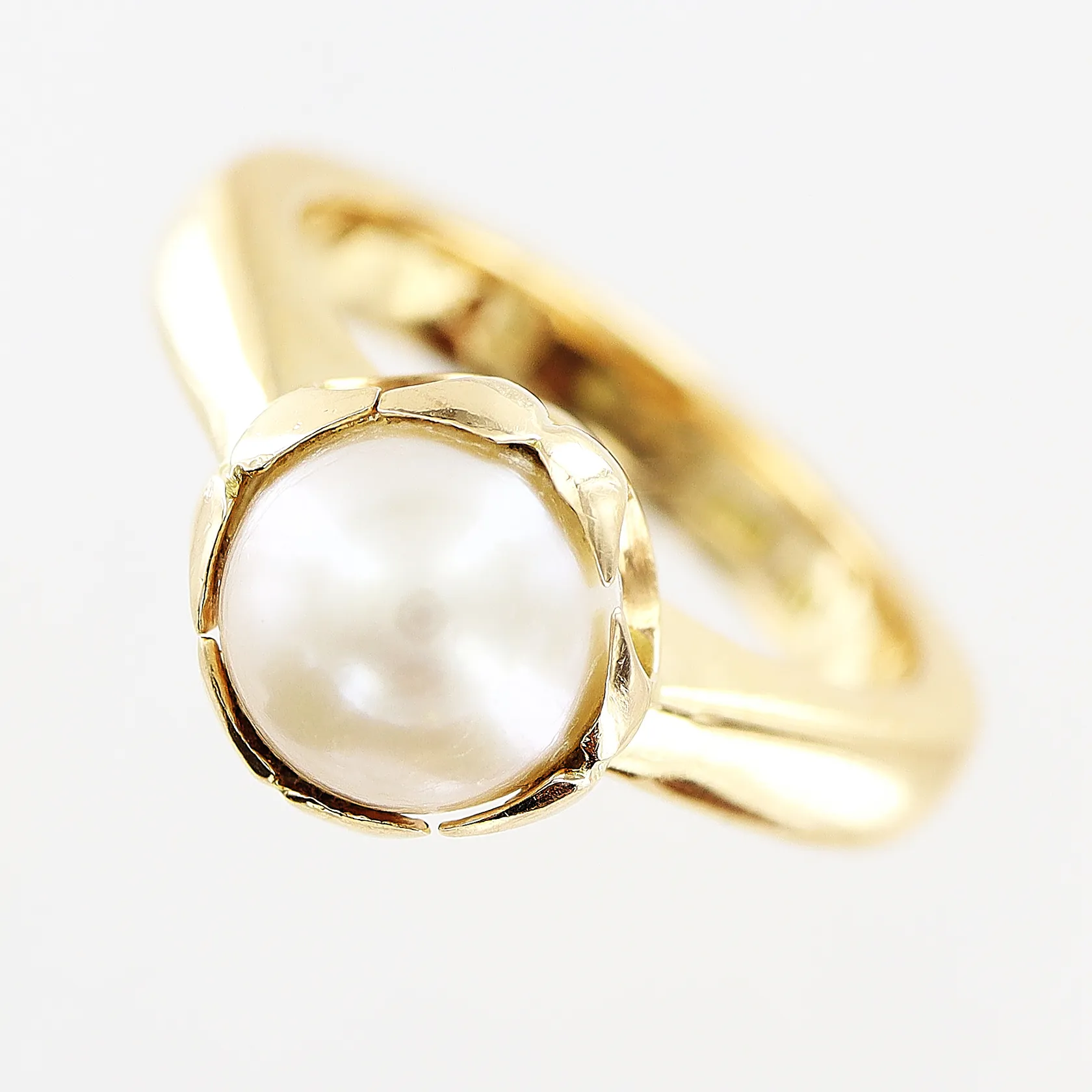 Ring, odlad pärla, stl 16¼, bredd 3-9mm, 18K Vikt: 7,8 g.